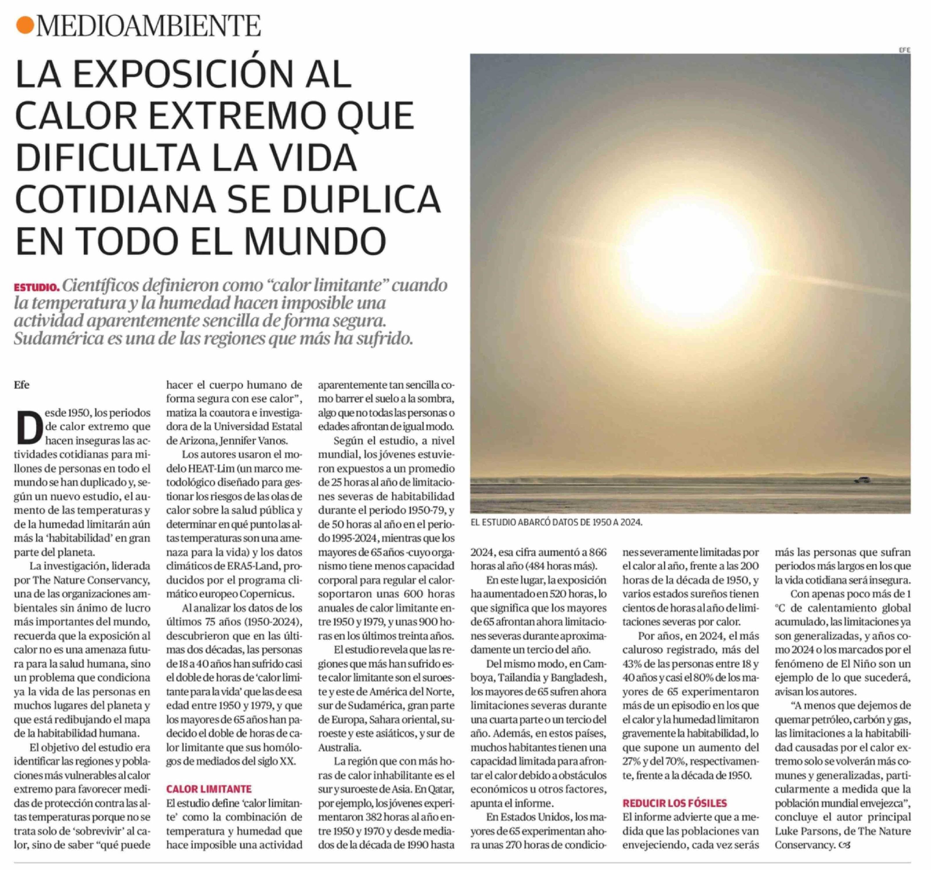 LA EXPOSICIÓN AL CALOR EXTREMO QUE DIFICULTA LA VIDA COTIDIANA SE DUPLICA EN TODO EL MUNDO