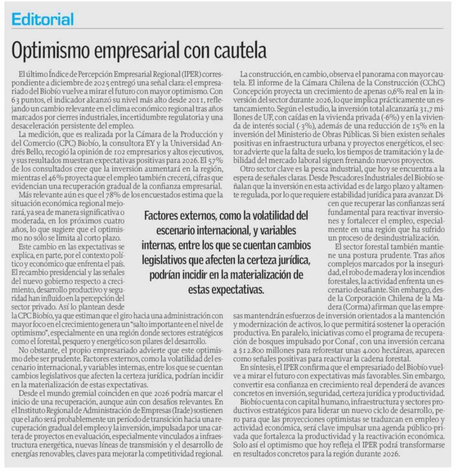 Editorial: Optimismo empresarial con cautela