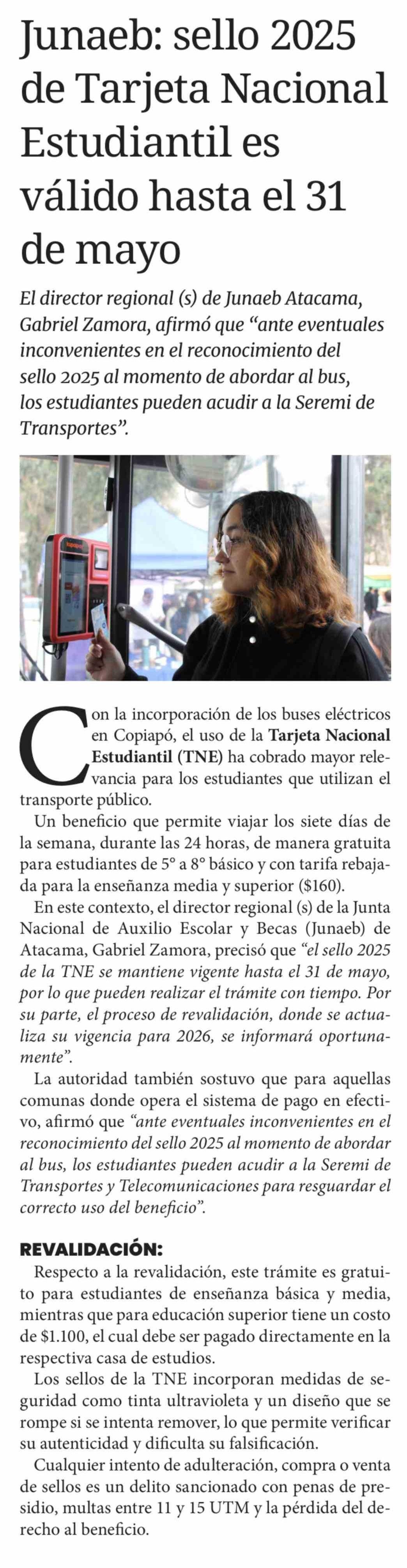 Título: Junaeb: sello 2025 de Tarjeta Nacional Estudiantil es válido hasta el 31 de mayo