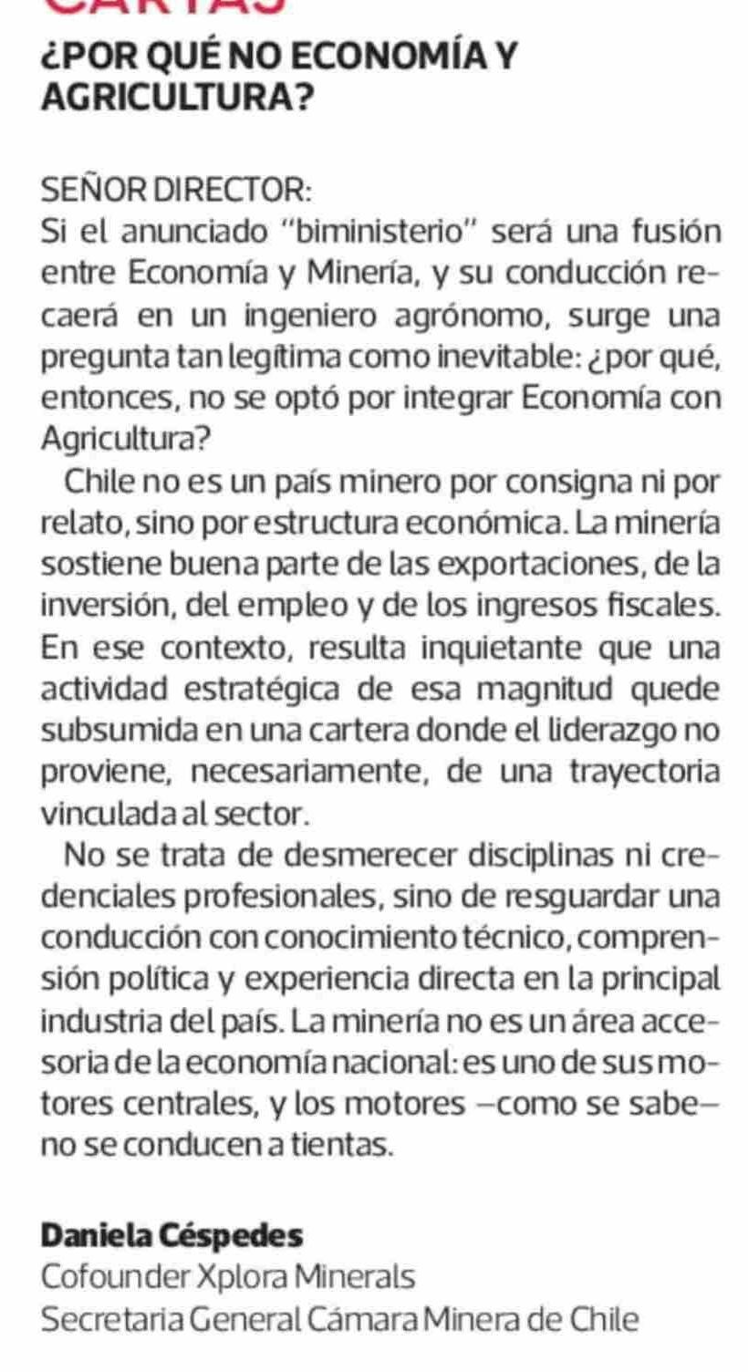 Cartas: ¿POR QUÉ NO ECONOMÍA Y AGRICULTURA?