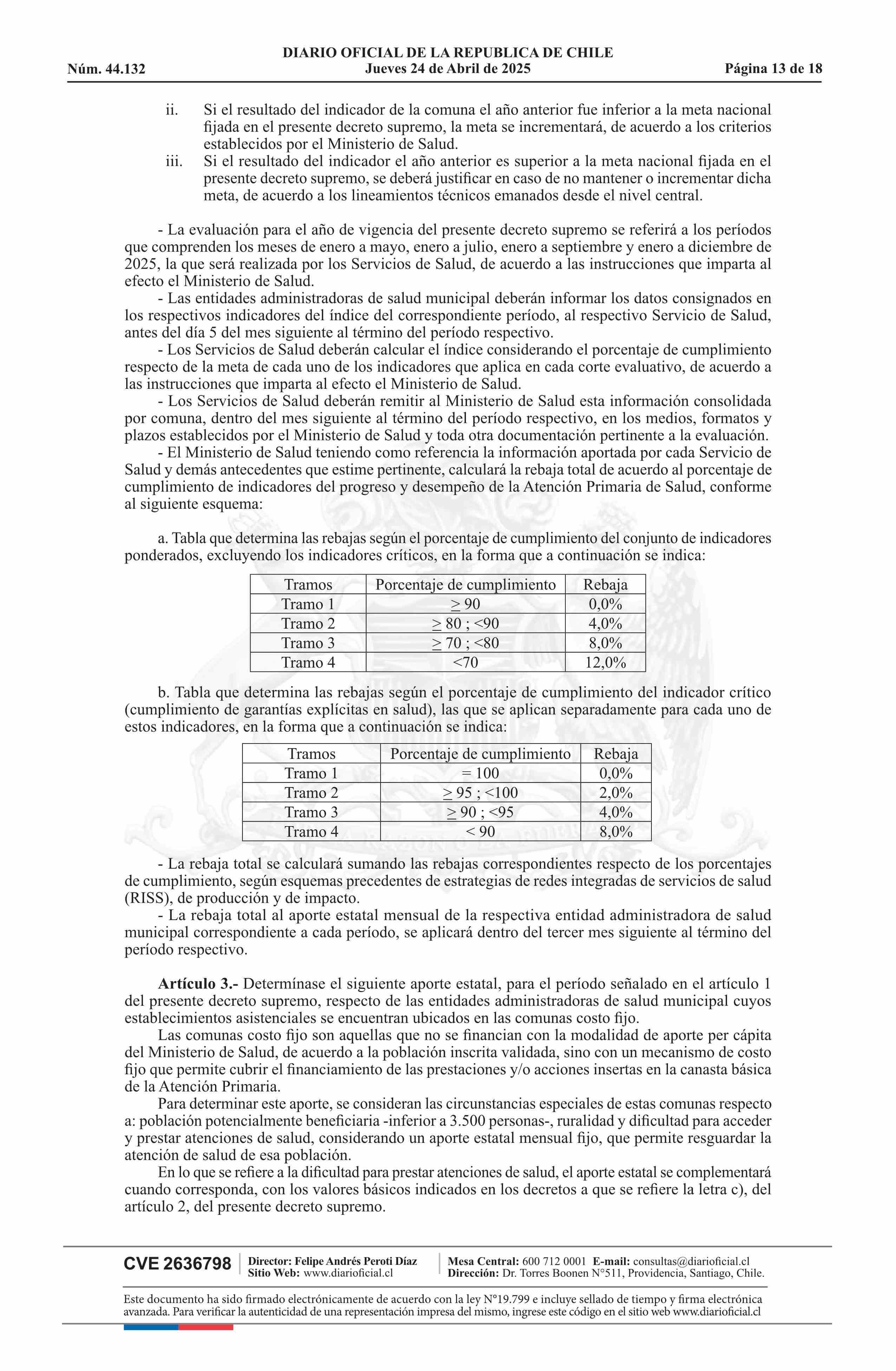 | Título: | Decreto número 21, de 2024.- Determina aporte estatal a las municipalidades que indica, para sus entidades administradoras de salud municipal, año 2025 |