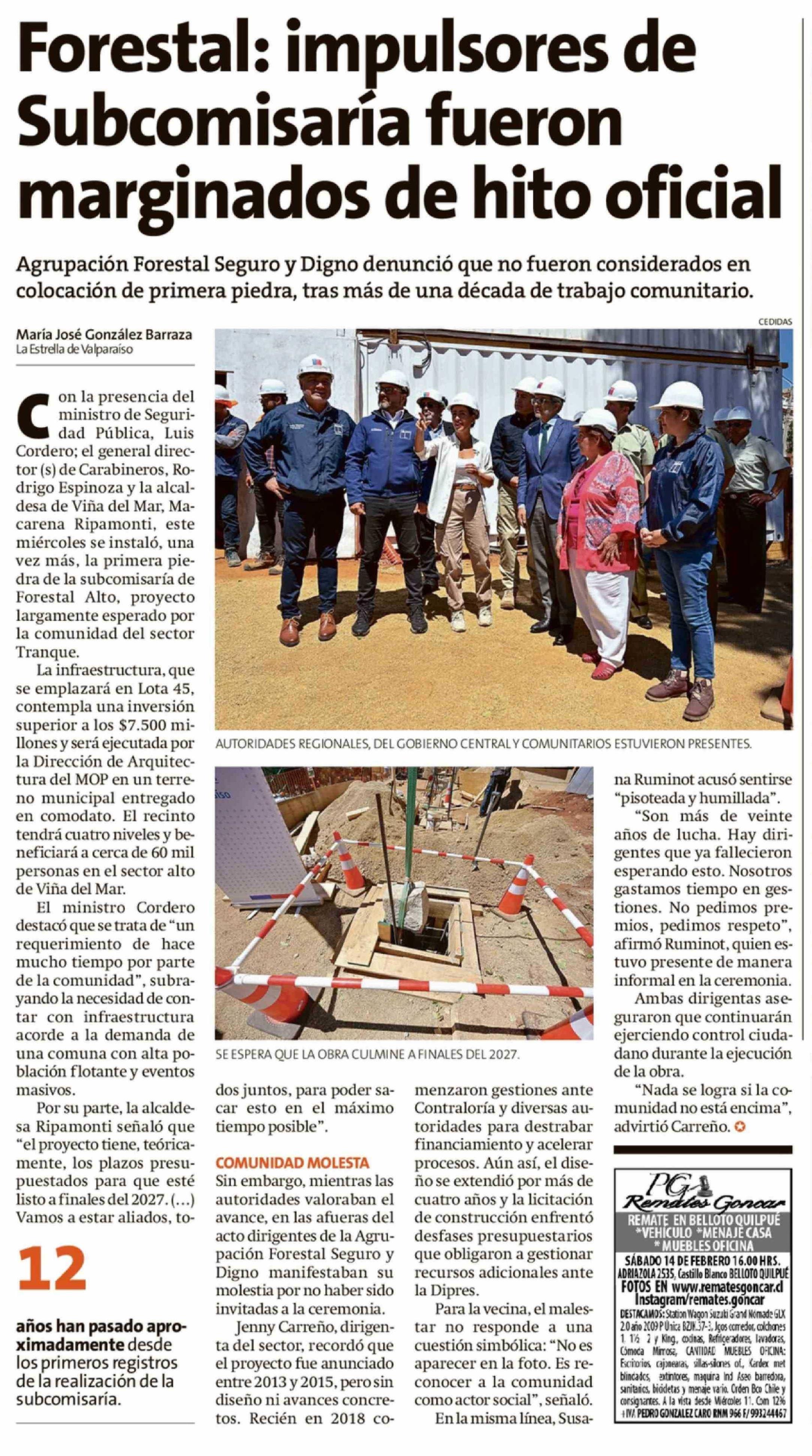 Título: Forestal: impulsores de Subcomisaría fueron marginados de hito oficial