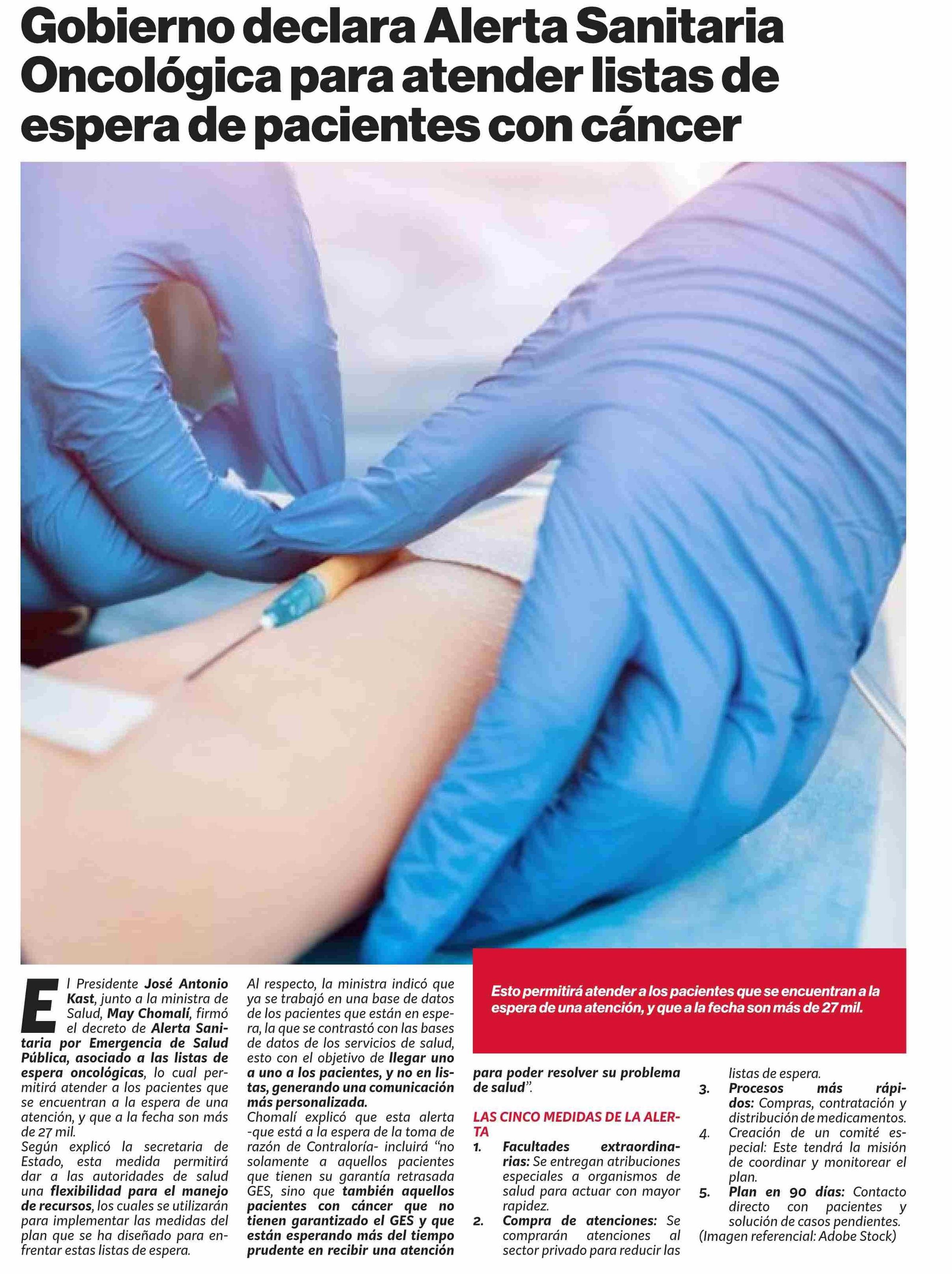 Gobierno declara Alerta Sanitaria Oncológica para atender listas de espera de pacientes con cáncer