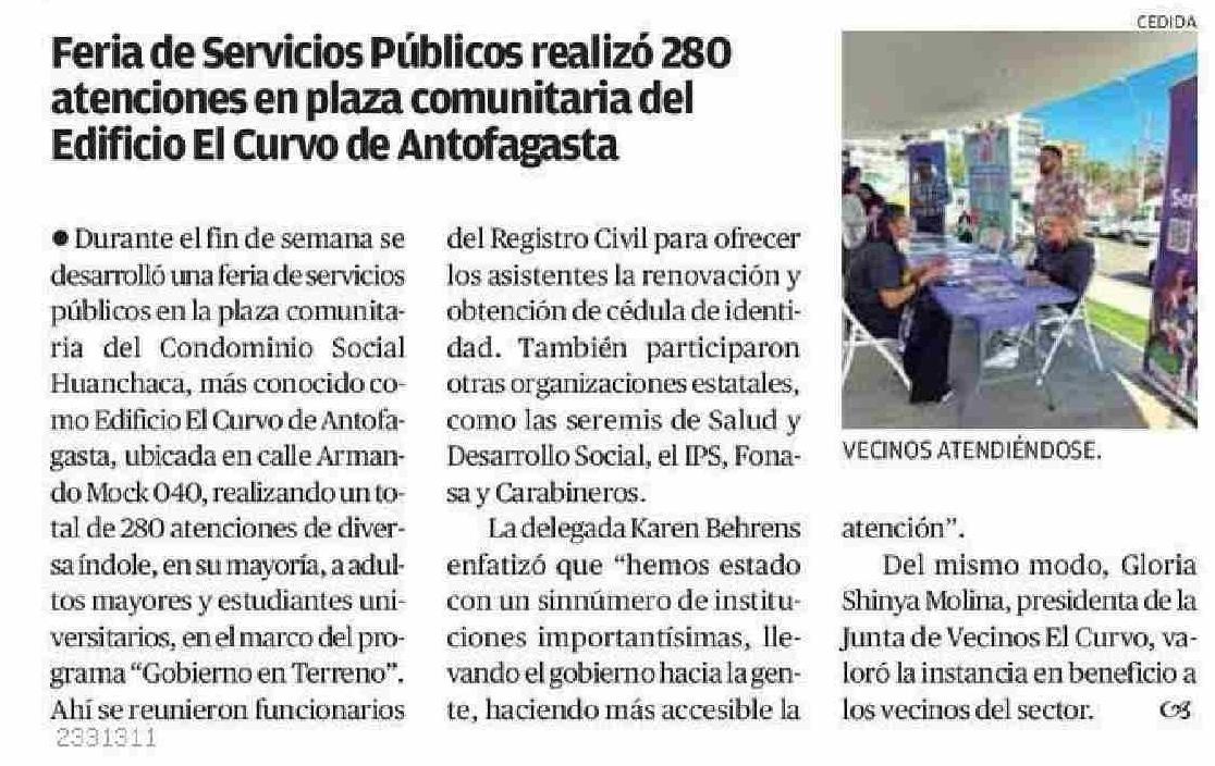 Feria de Servicios Públicos realizó 280 atenciones en plaza comunitaria del Edificio El Curvo de Antofagasta