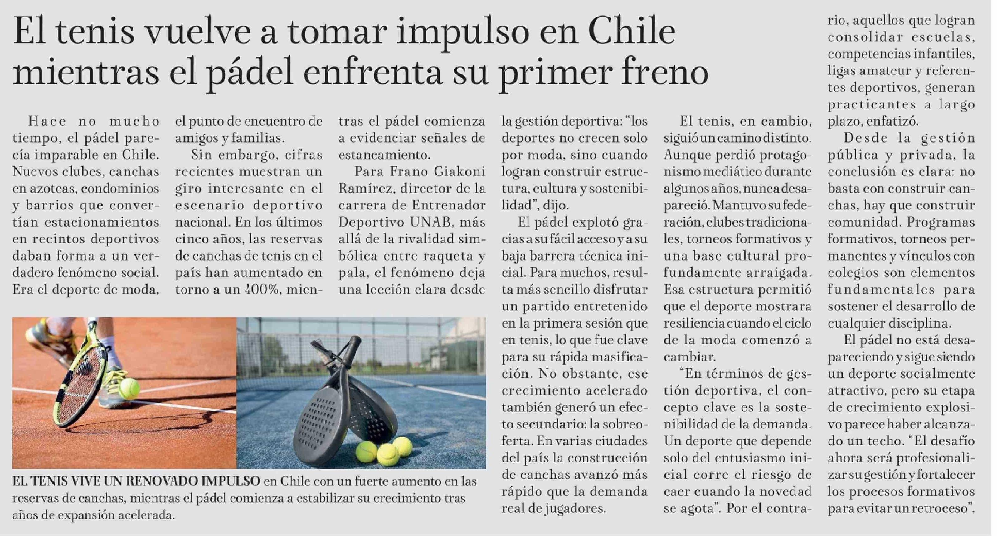 El tenis vuelve a tomar impulso en Chile mientras el pádel enfrenta su primer freno