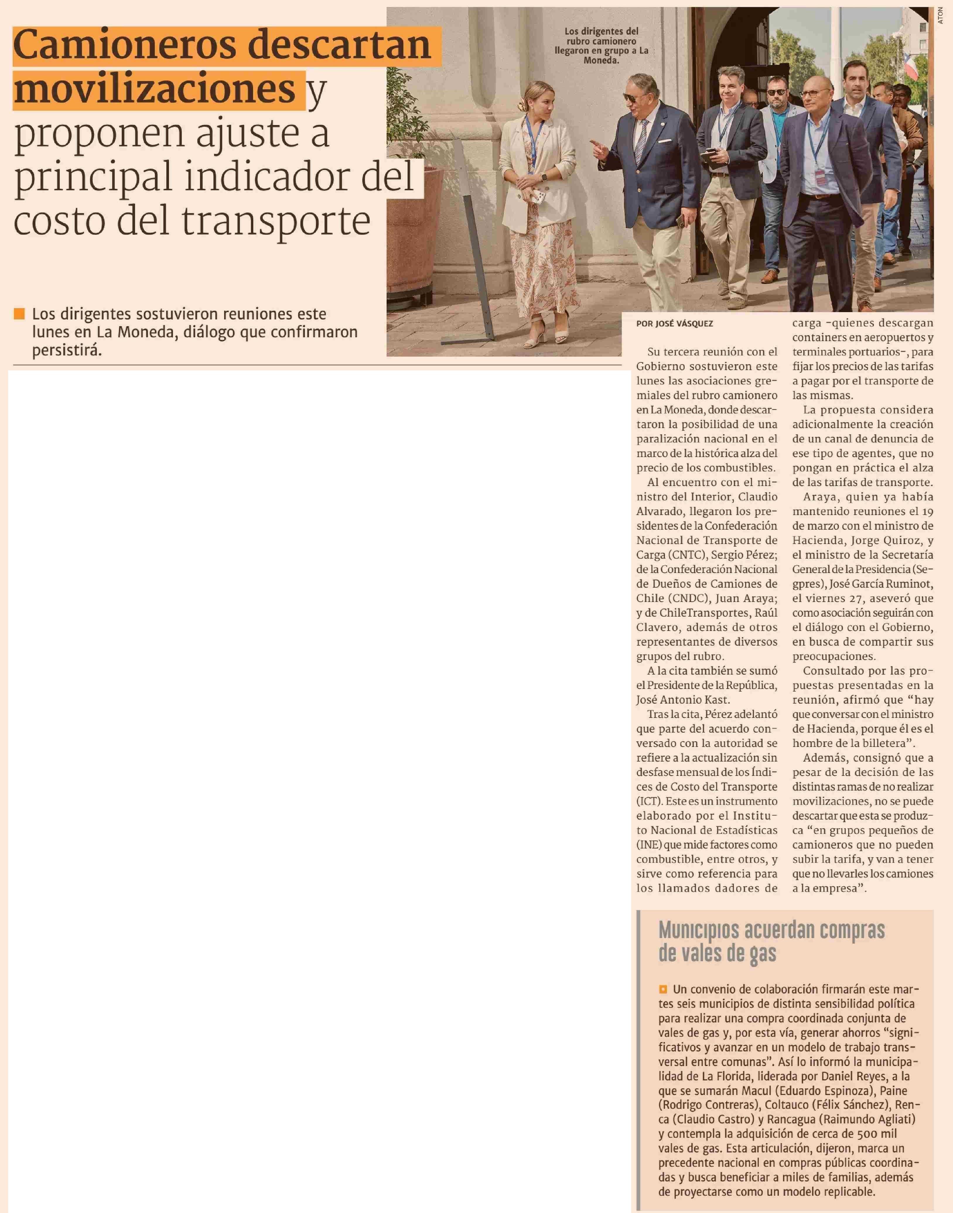 Camioneras descartan movilizaciones y proponen ajustes a principal indicador del costo del transporte