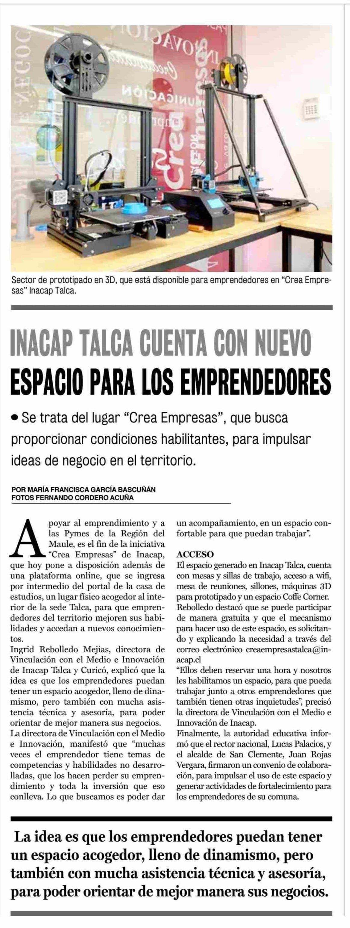 INACAP TALCA CUENTA CON NUEVO ESPACIO PARA LOS EMPRENDEDORES