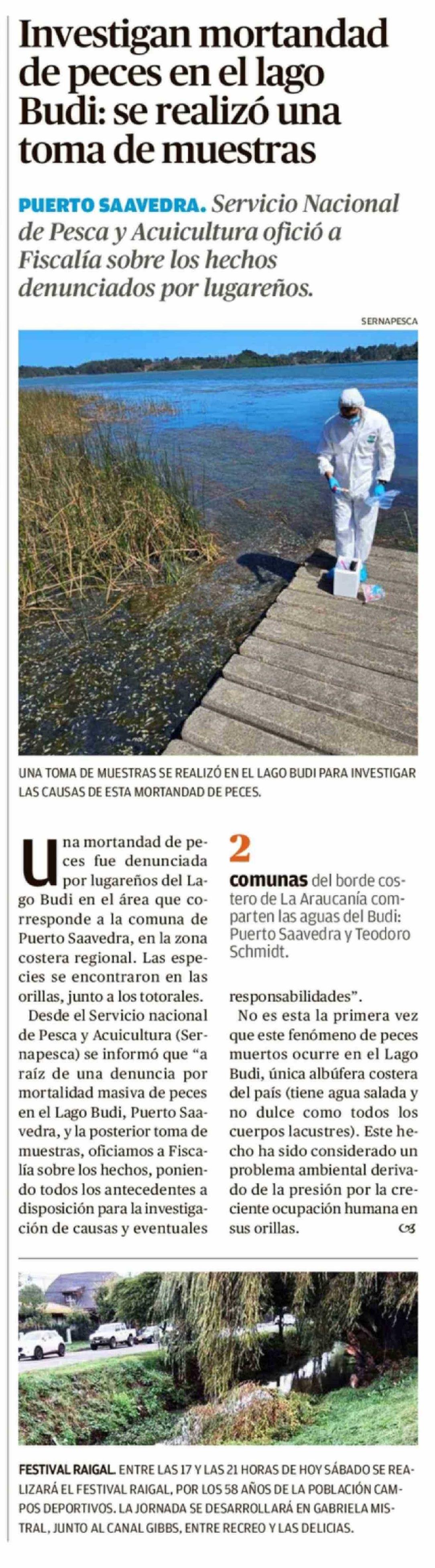 Investigan mortandad de peces en el lago Budi: se realizó una toma de muestras