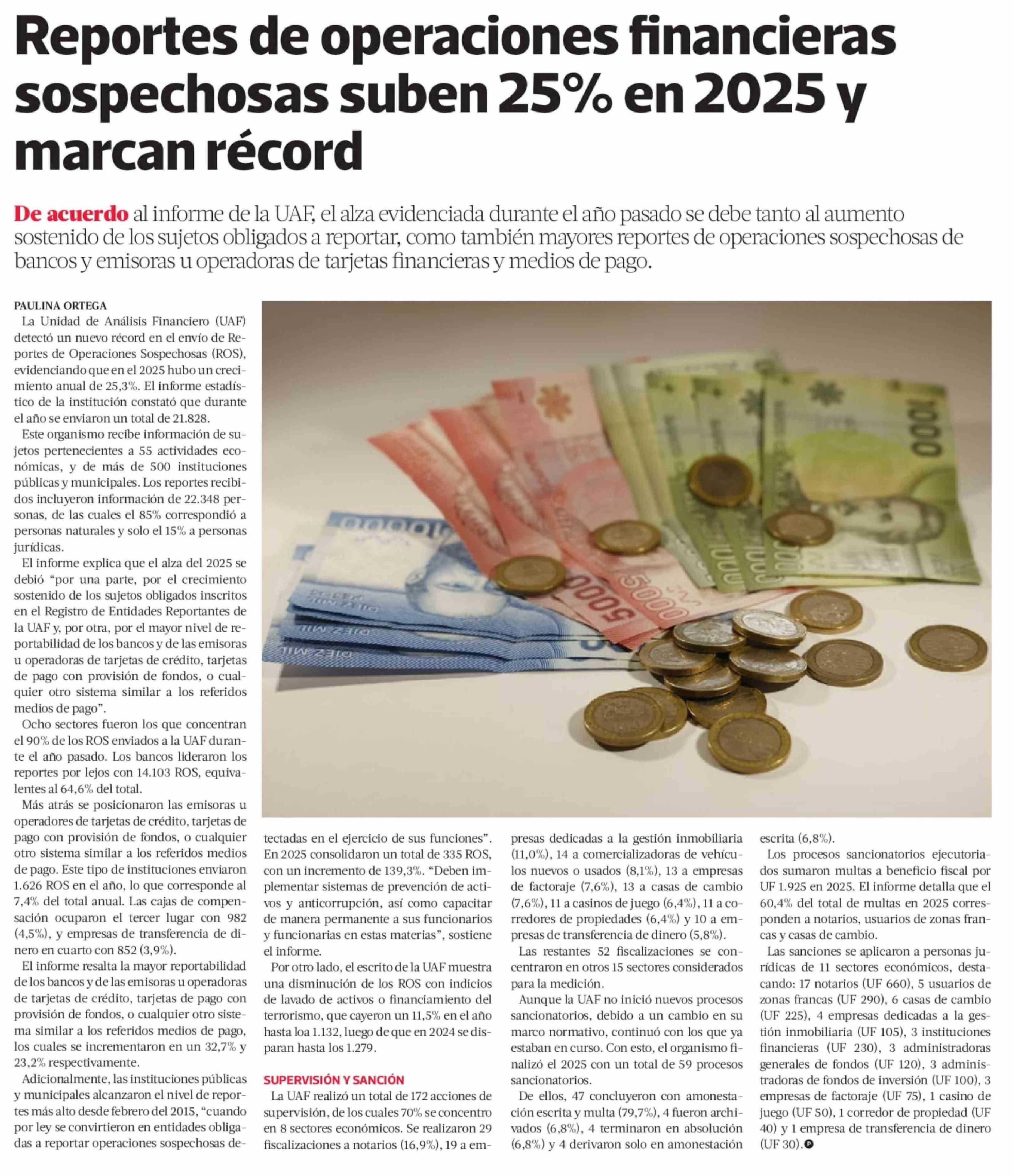 Reportes de operaciones financieras sospechosas suben 25% en 2025 y marcan récord