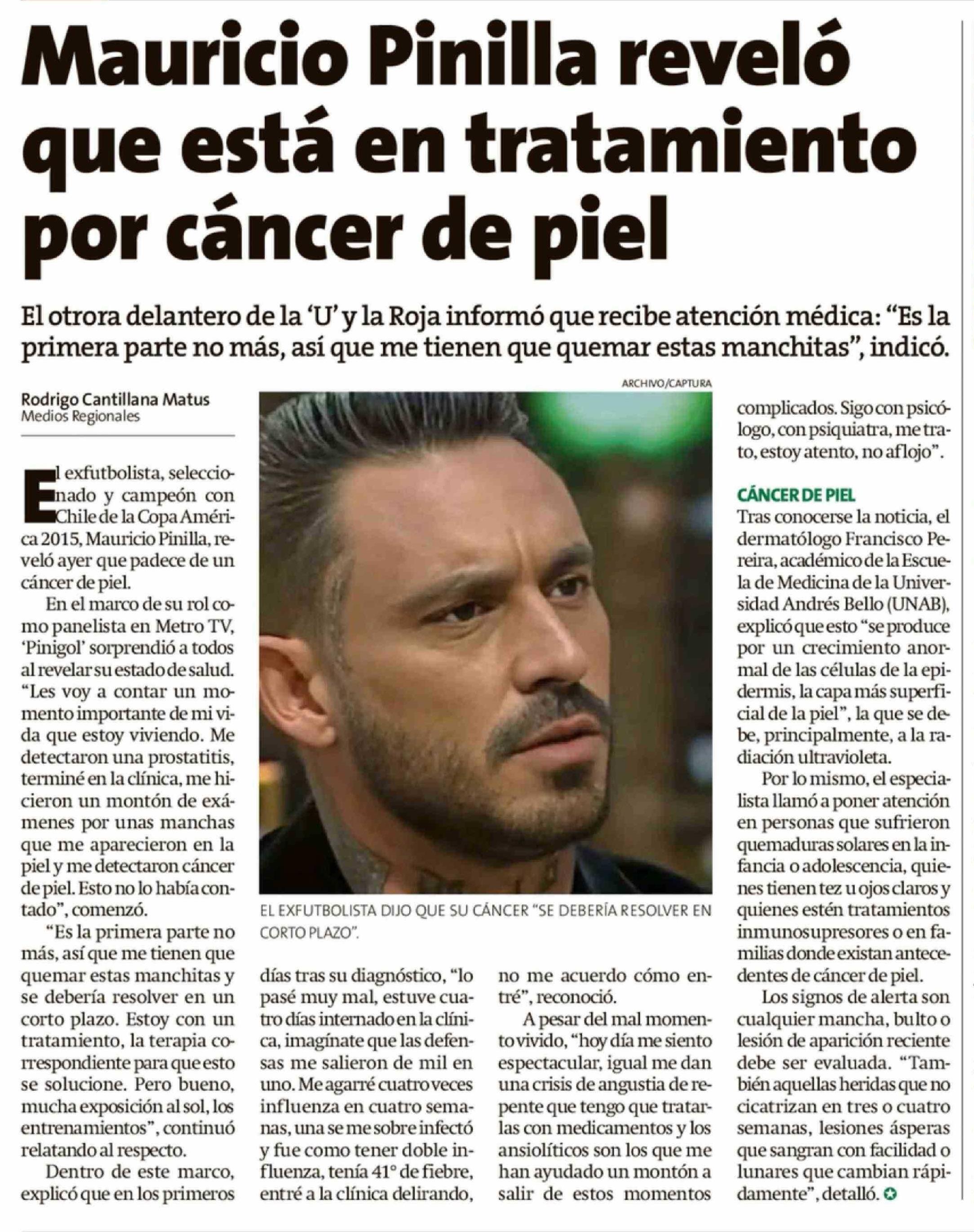 Título: Mauricio Pinilla reveló que está en tratamiento por cáncer de piel