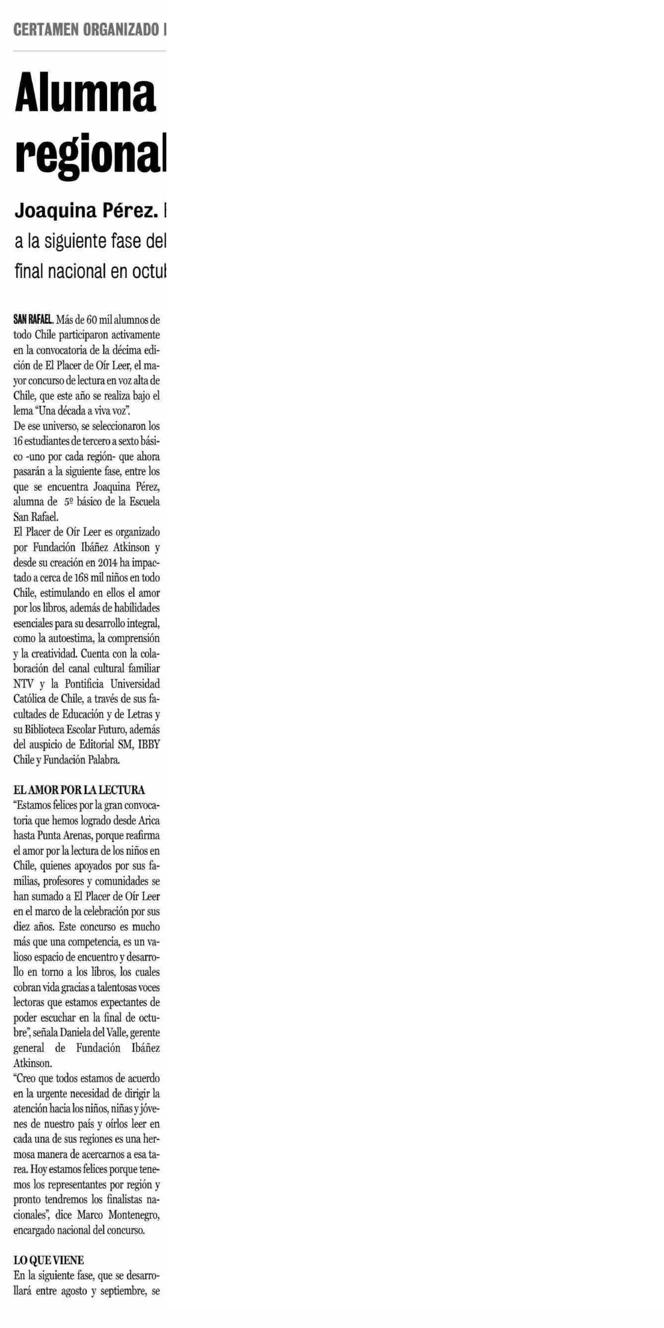 Alumna de San Rafael ganadora regional de El Placer de Oír Leer