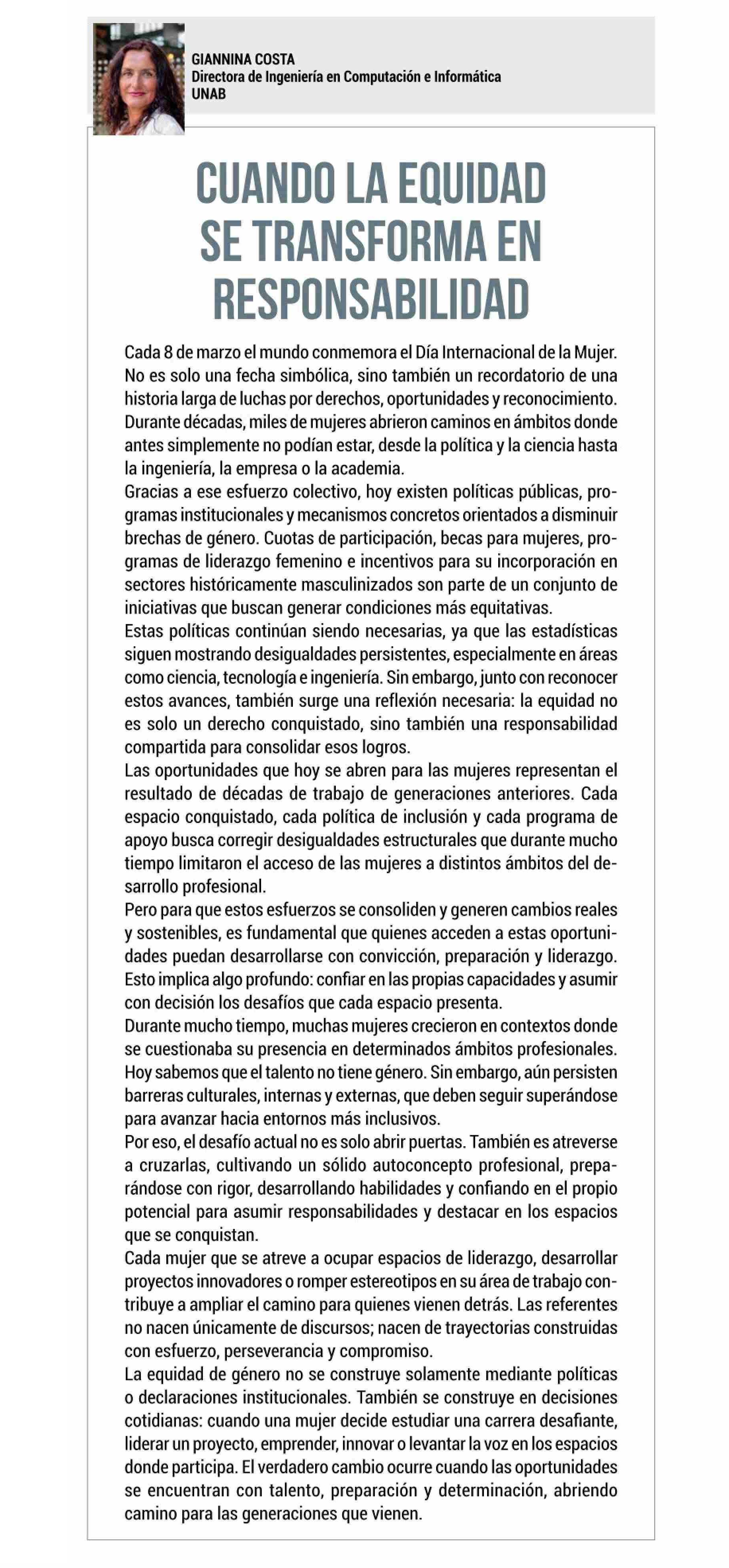 Título: CUANDO LA EQUIDAD SE TRANSFORMA EN RESPONSABILIDAD