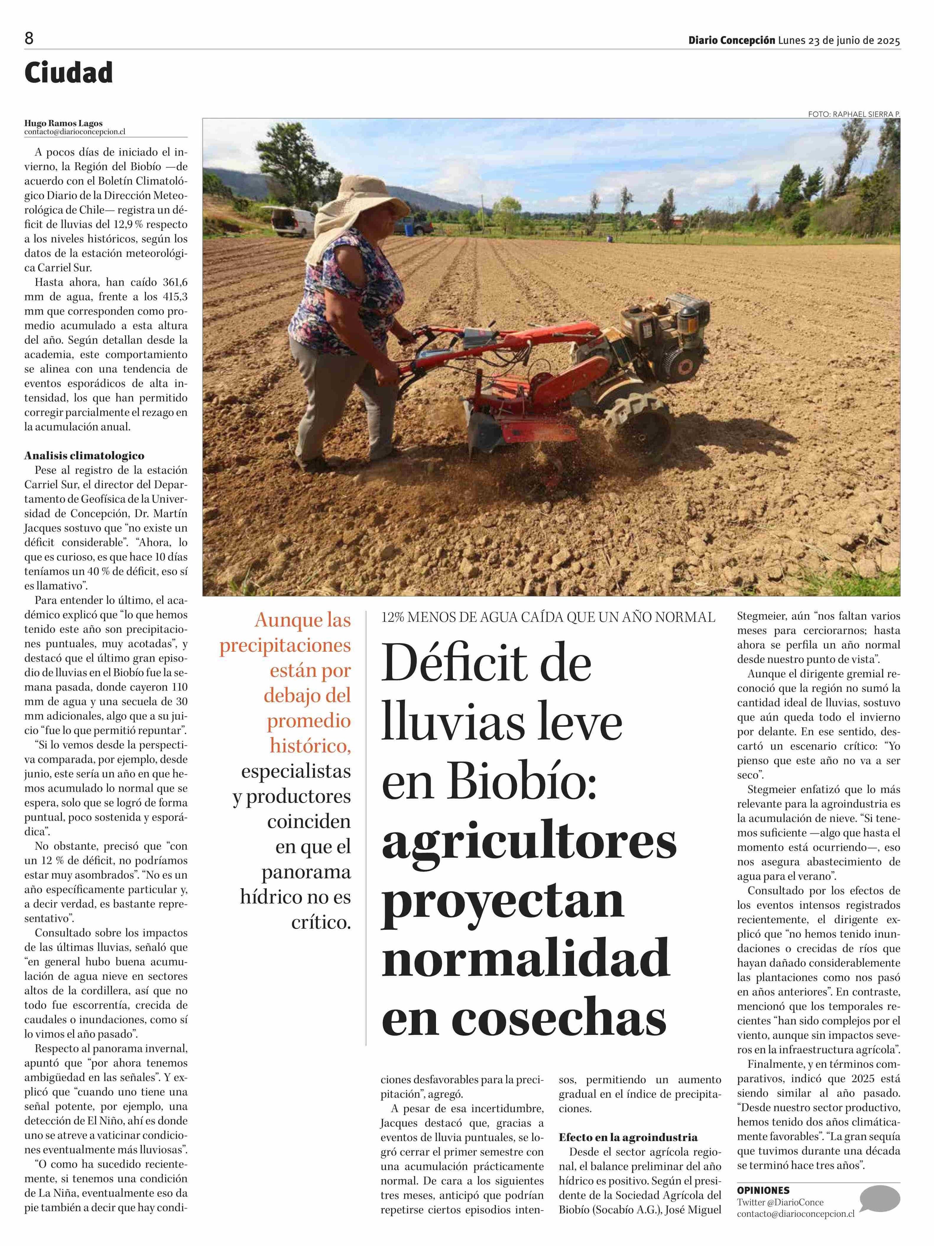 Déficit de lluvias leve en Biobío: agricultores proyectan normalidad en cosechas