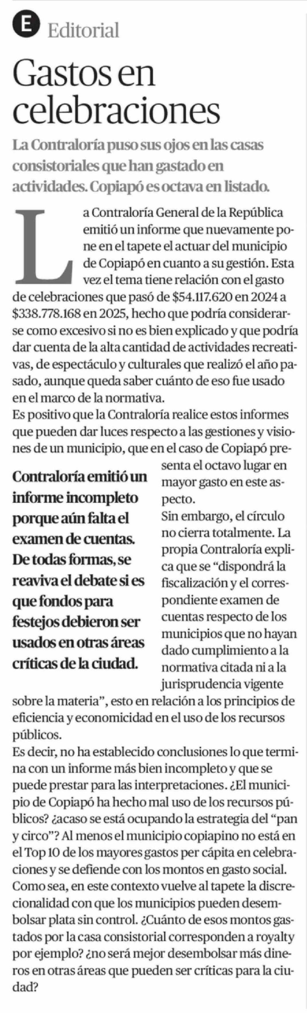 Editorial: Gastos en celebraciones