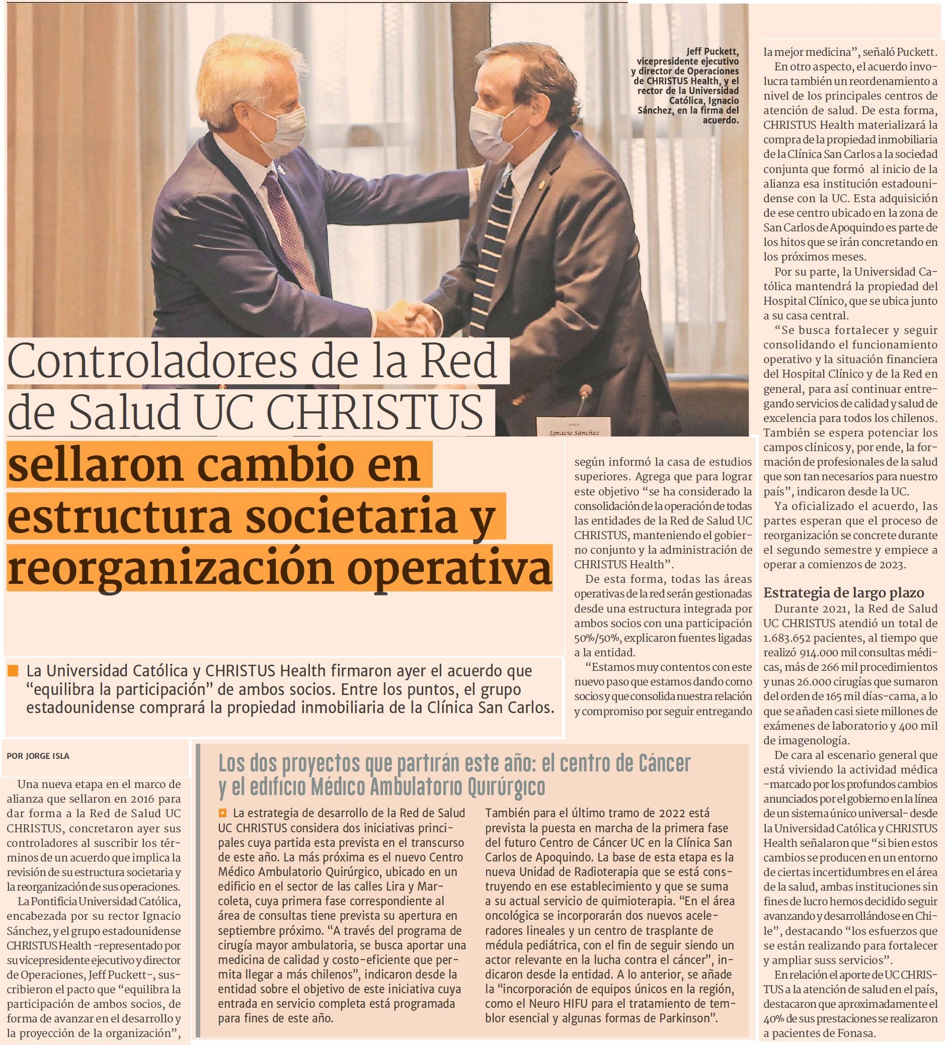 Controladores de la Red de Salud UC CHRISTUS sellaron cambio en estructura societaria y reorganización operativa