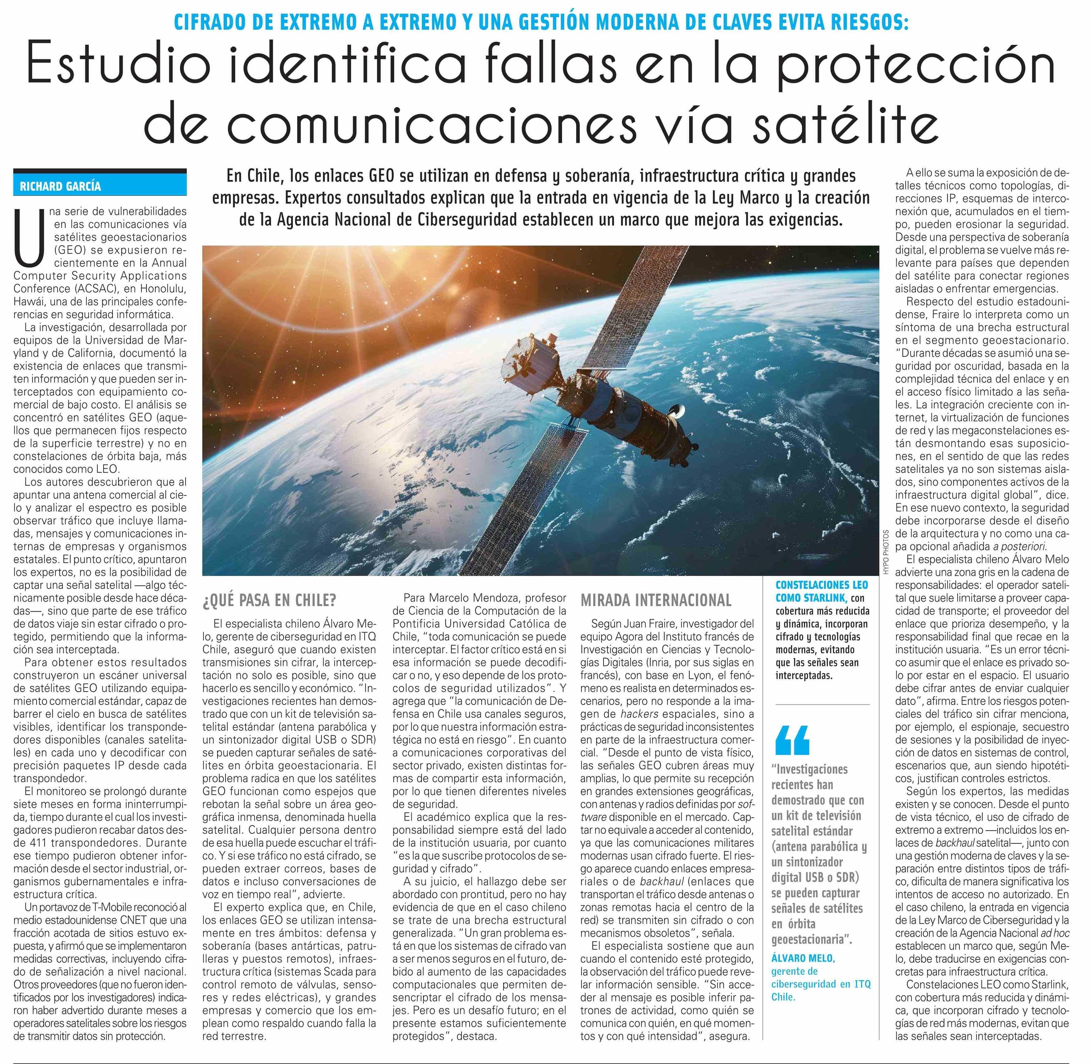 Estudio identifica fallas en la protección de comunicaciones vía satélite