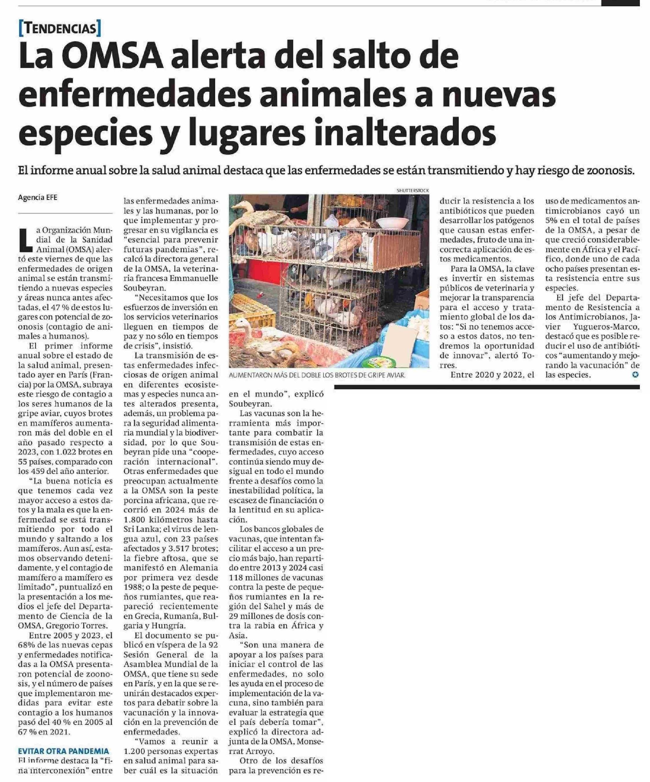 La OMSA alerta del salto de enfermedades animales a nuevas especies y lugares inalterados