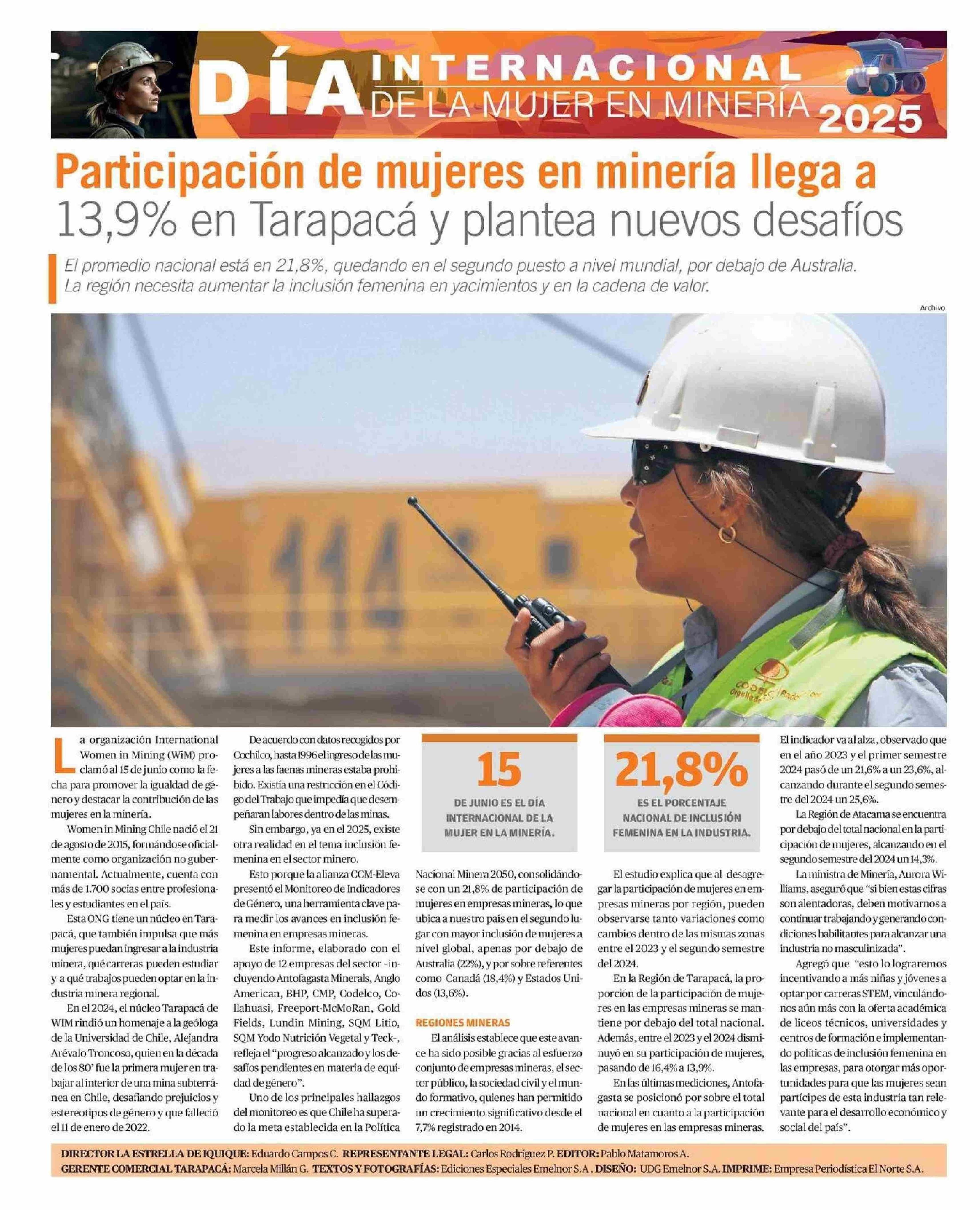 Participación de mujeres en mineria llega a 13, 9% en Tarapacá y plantea nuevos desafios