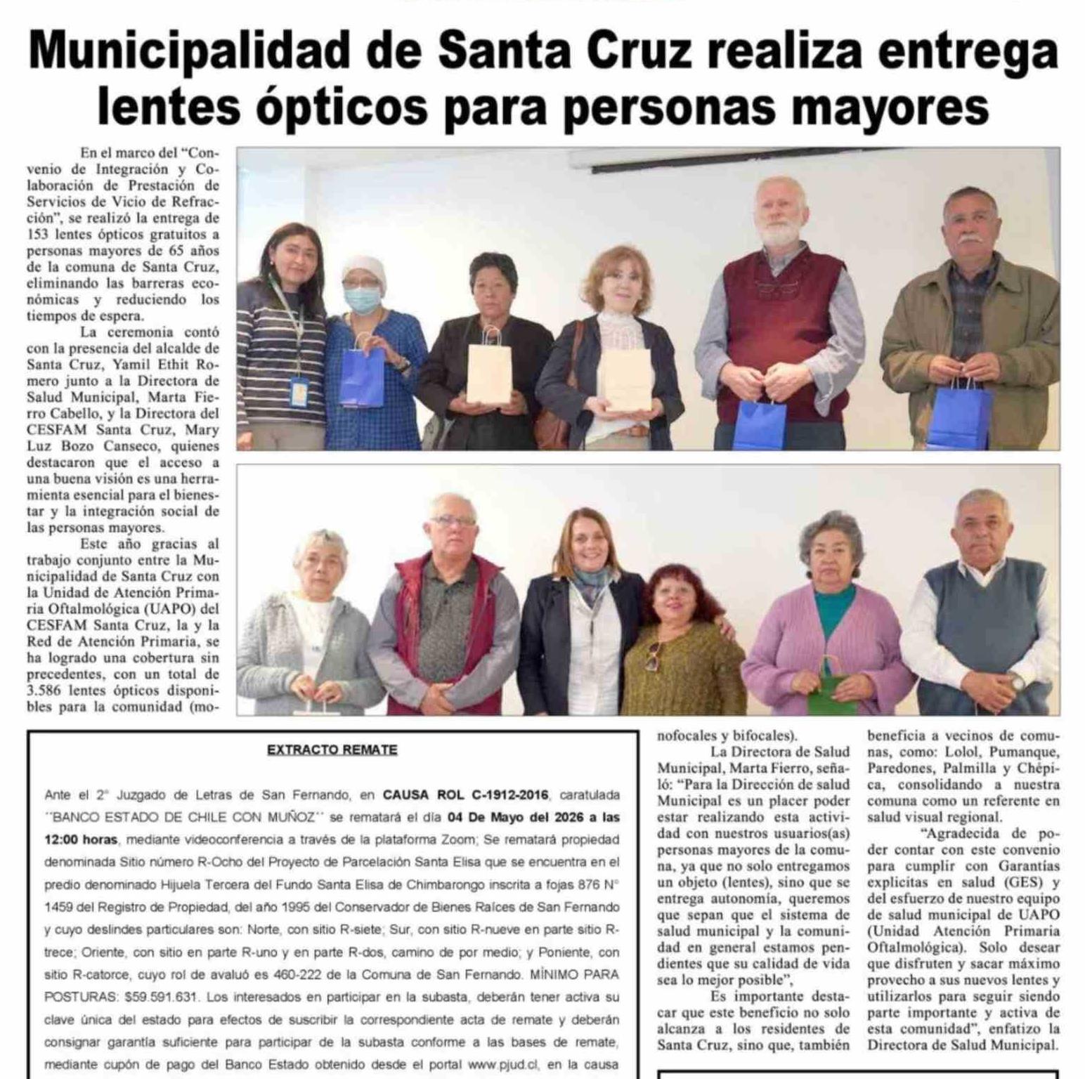 Municipalidad de Santa Cruz realiza entrega lentes ópticos para personas mayores