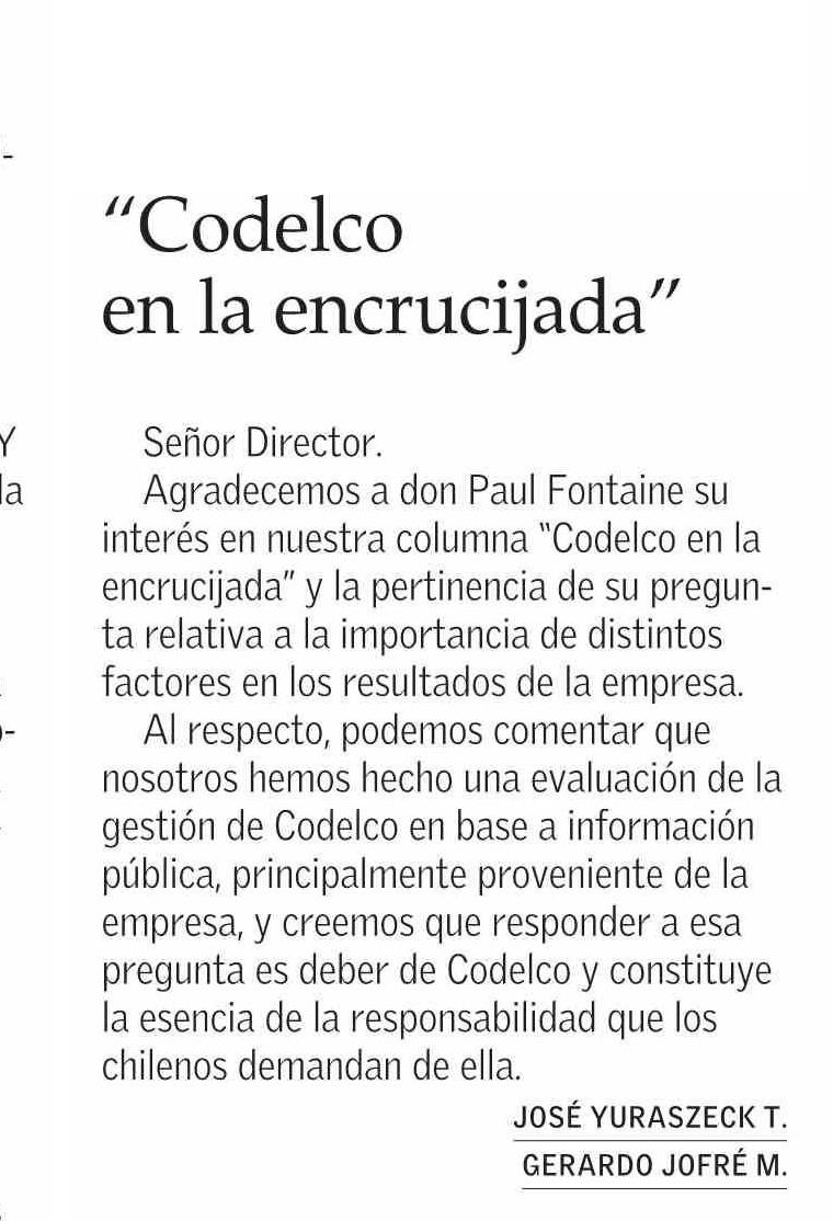 Título: CARTAS: “Codelco en la encrucijada”