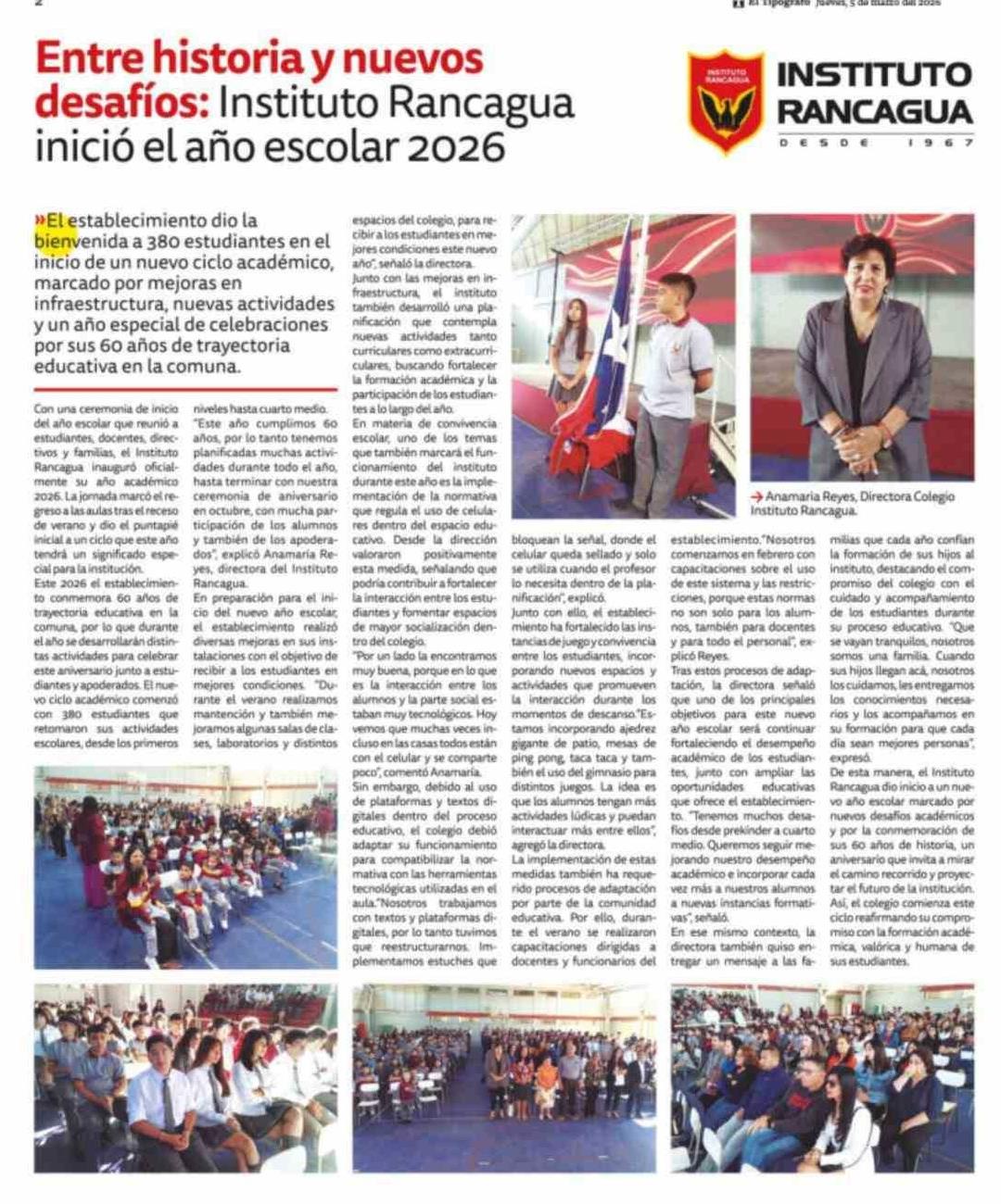 Título: Entre historia y nuevos desafíos: Instituto Rancagua inició el año escolar 2026