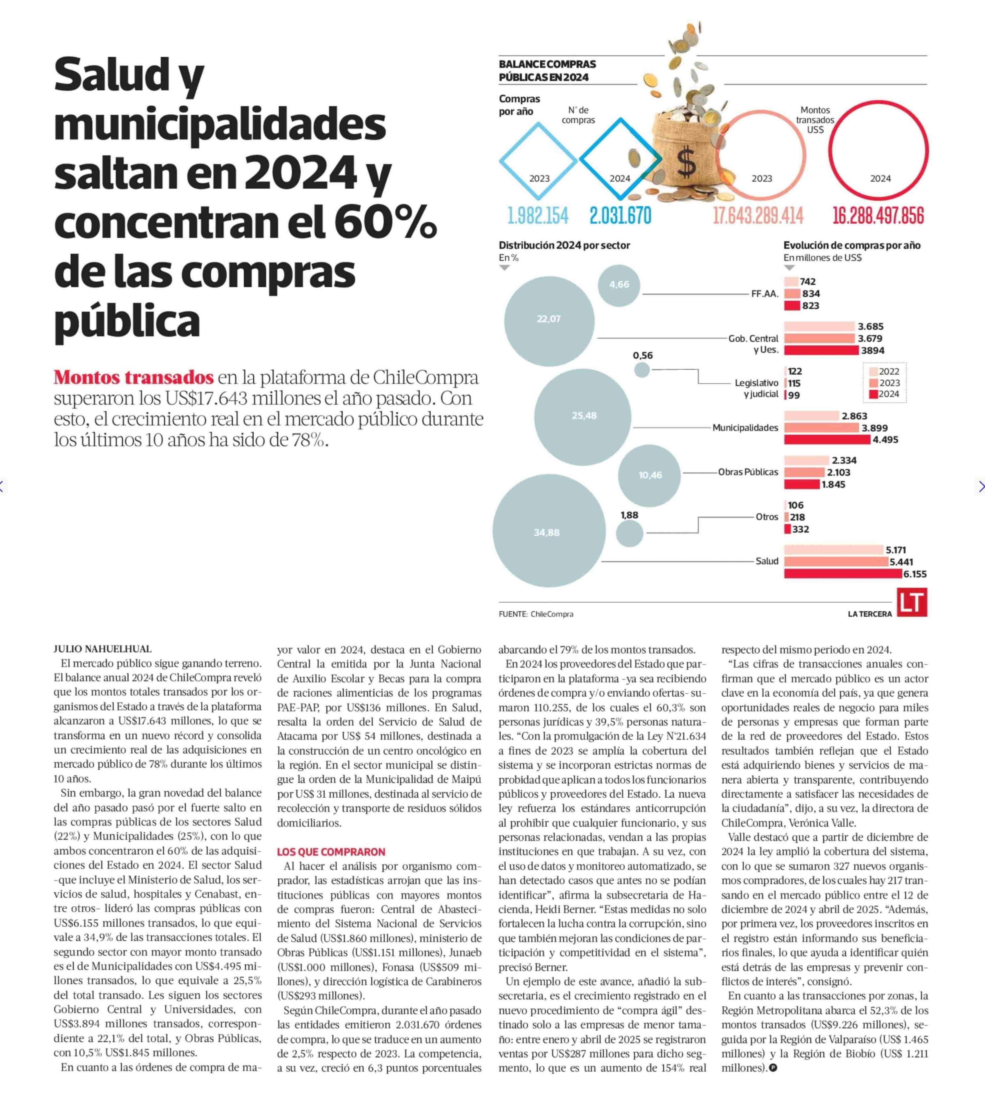 Salud y municipalidades saltan en 2024 y concentran el 60% de las compras pública