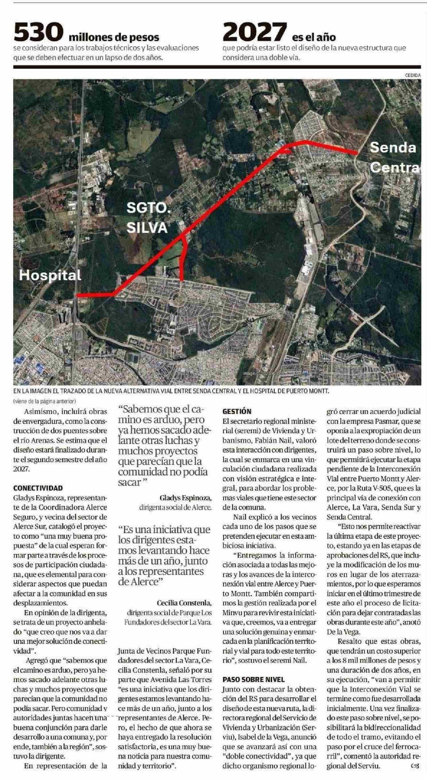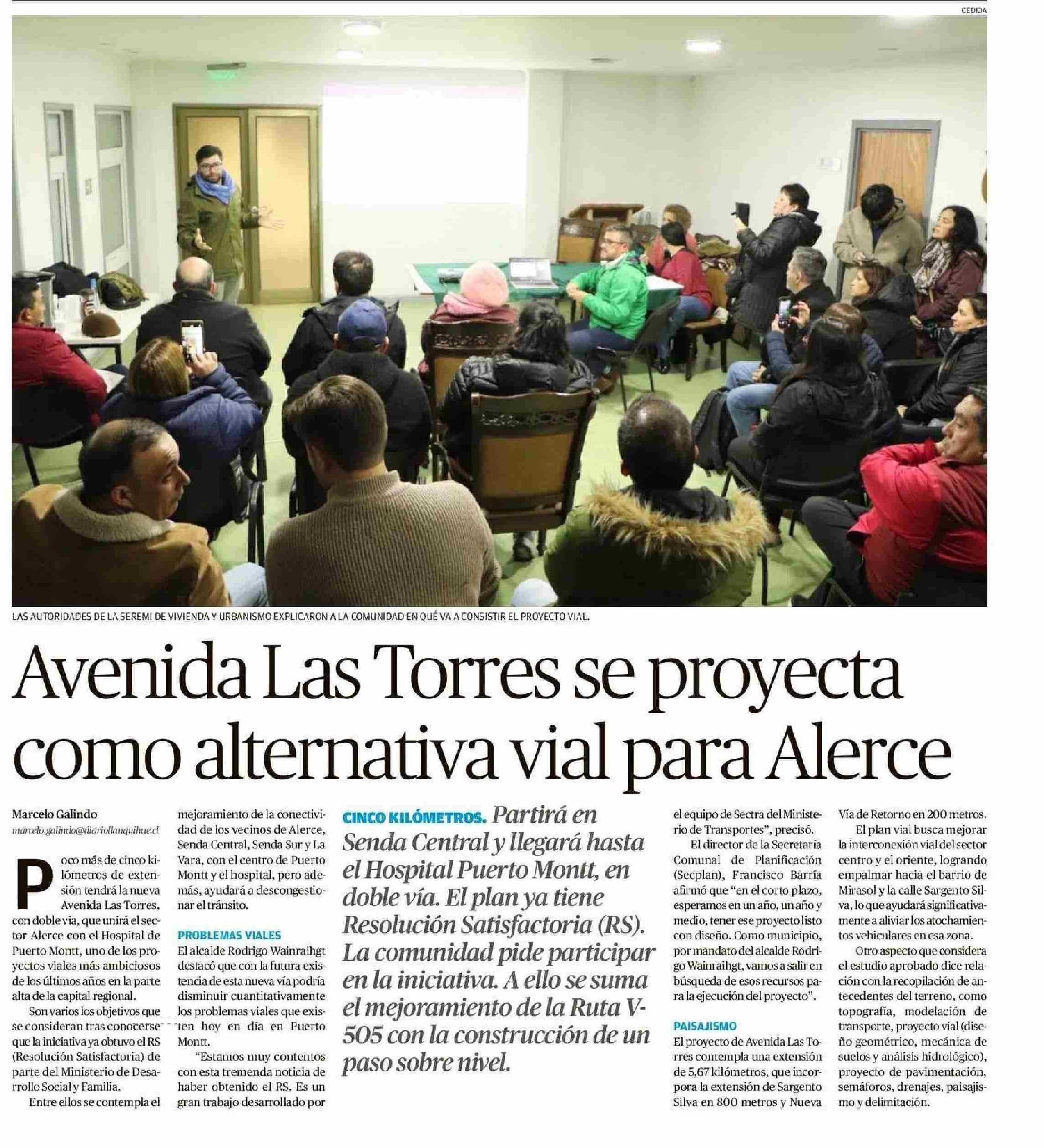 Avenida Las Torres se proyecta como alternativa vial para Alerce