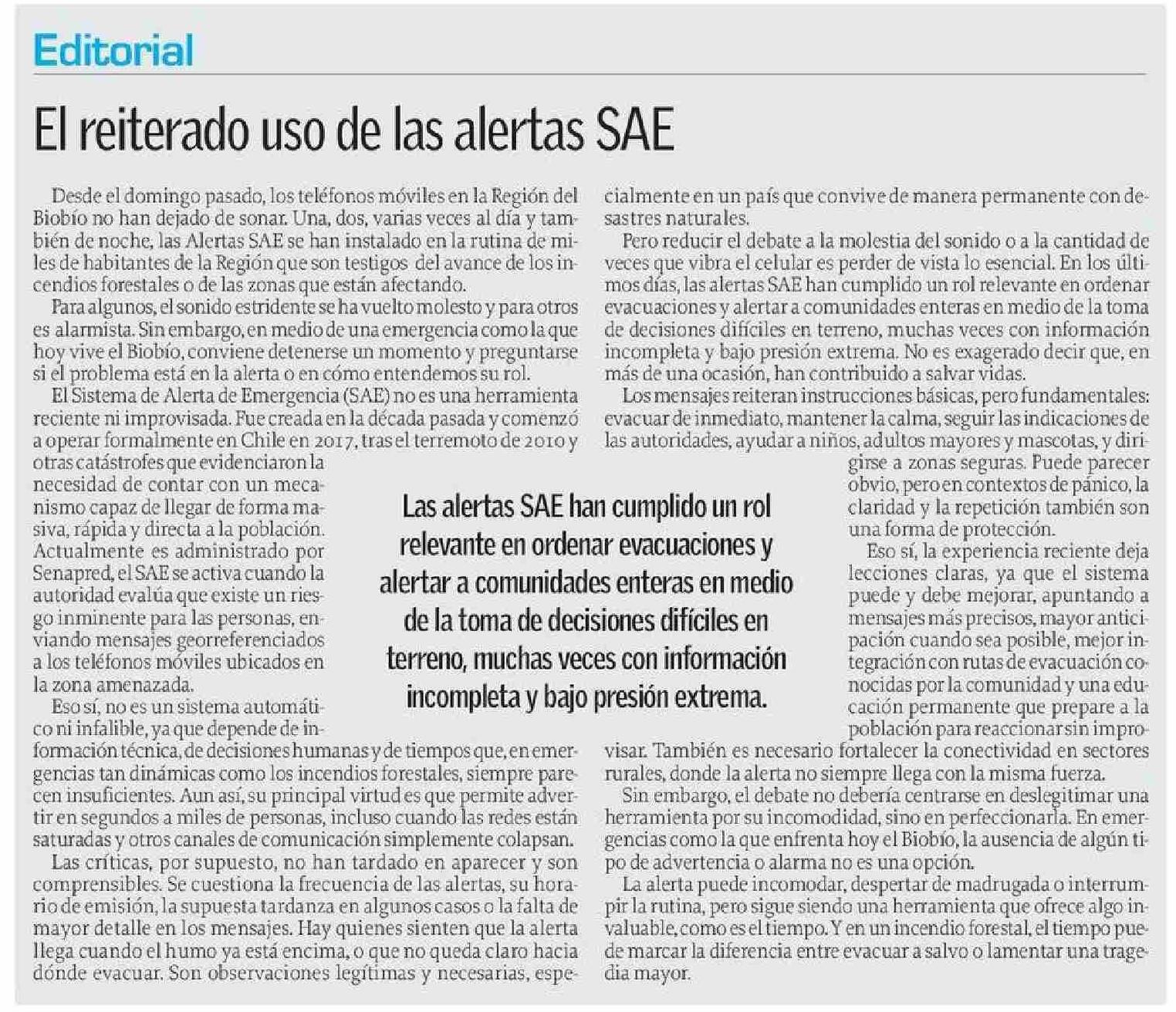 Editorial: El reiterado uso de las alertas SAE