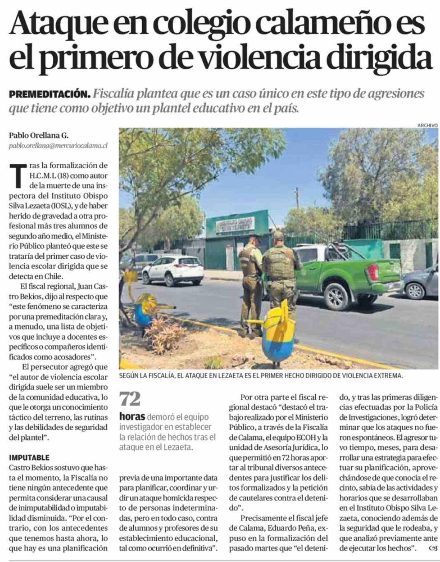 Ataque en colegio calameño es el primero de violencia dirigida