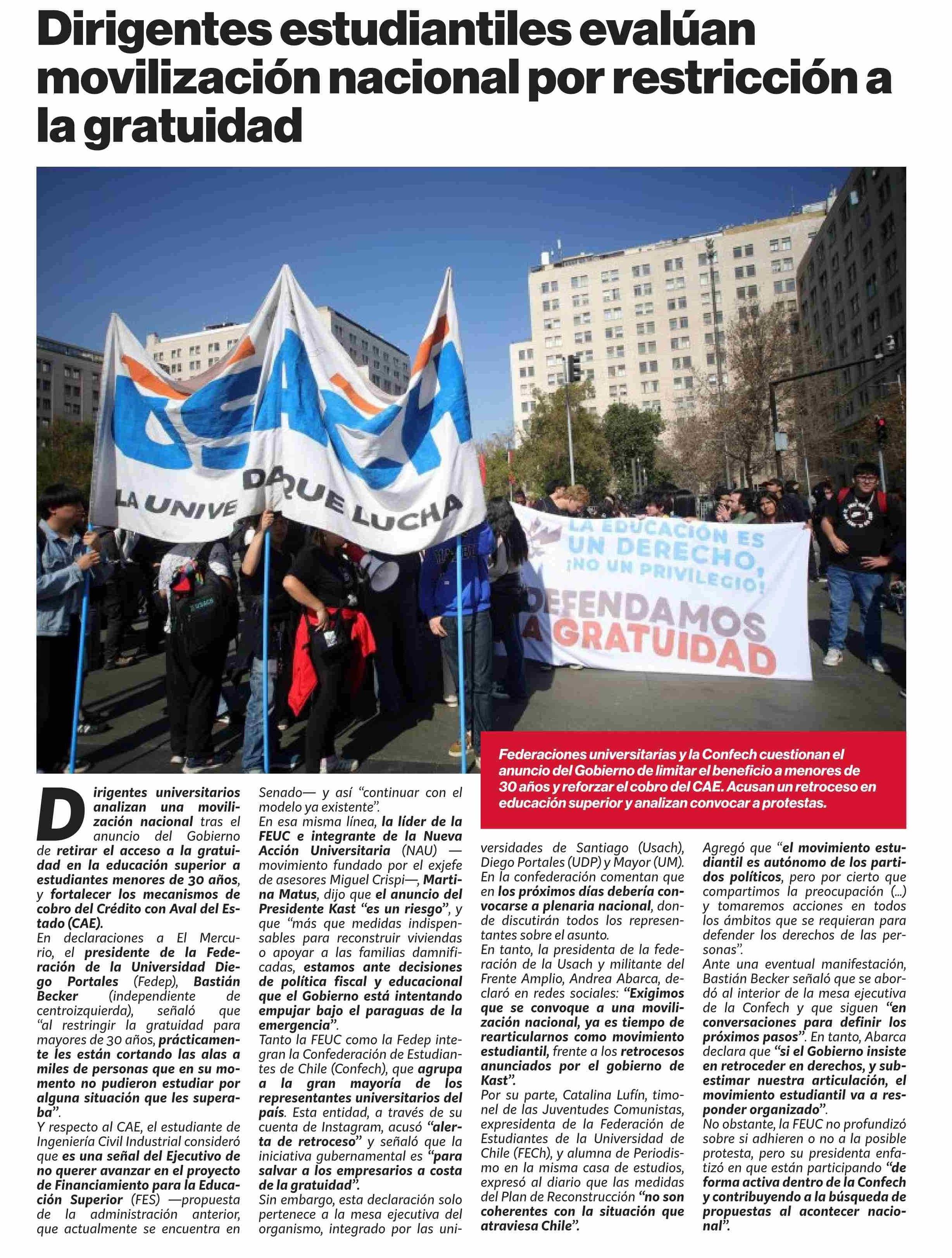 Título: Dirigentes estudiantiles evalúan movilización nacional por restricción a la gratuidad