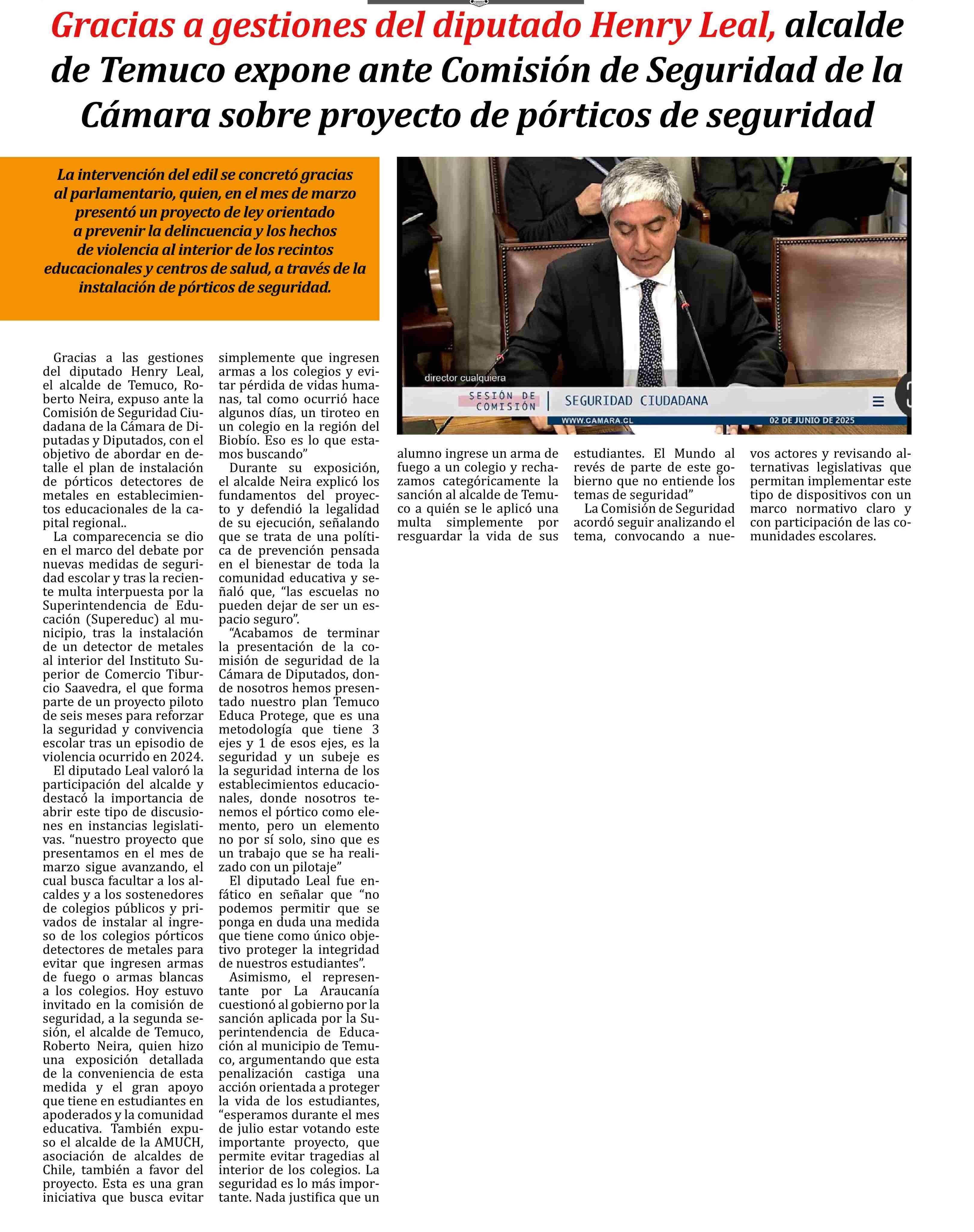 Gracias a gestiones del diputado Henry Leal, alcalde de Temuco expone ante Comisión de Seguridad de la Cámara sobre proyecto de pórticos de seguridad