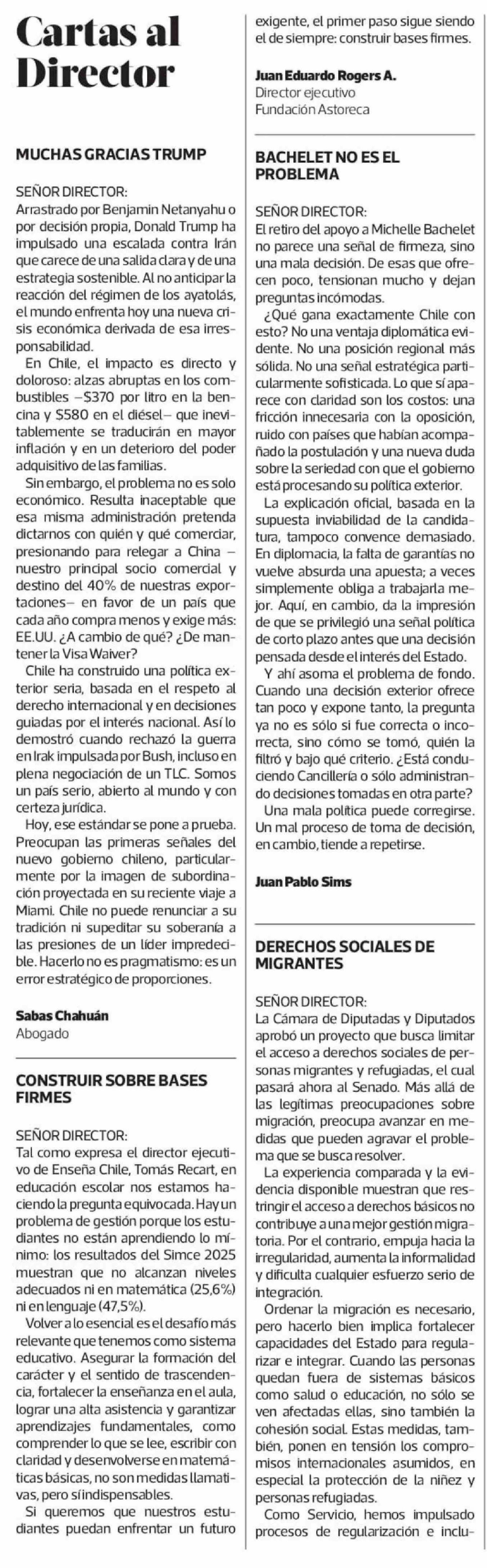 Cartas: CONSTRUIR SOBRE BASES FIRMES