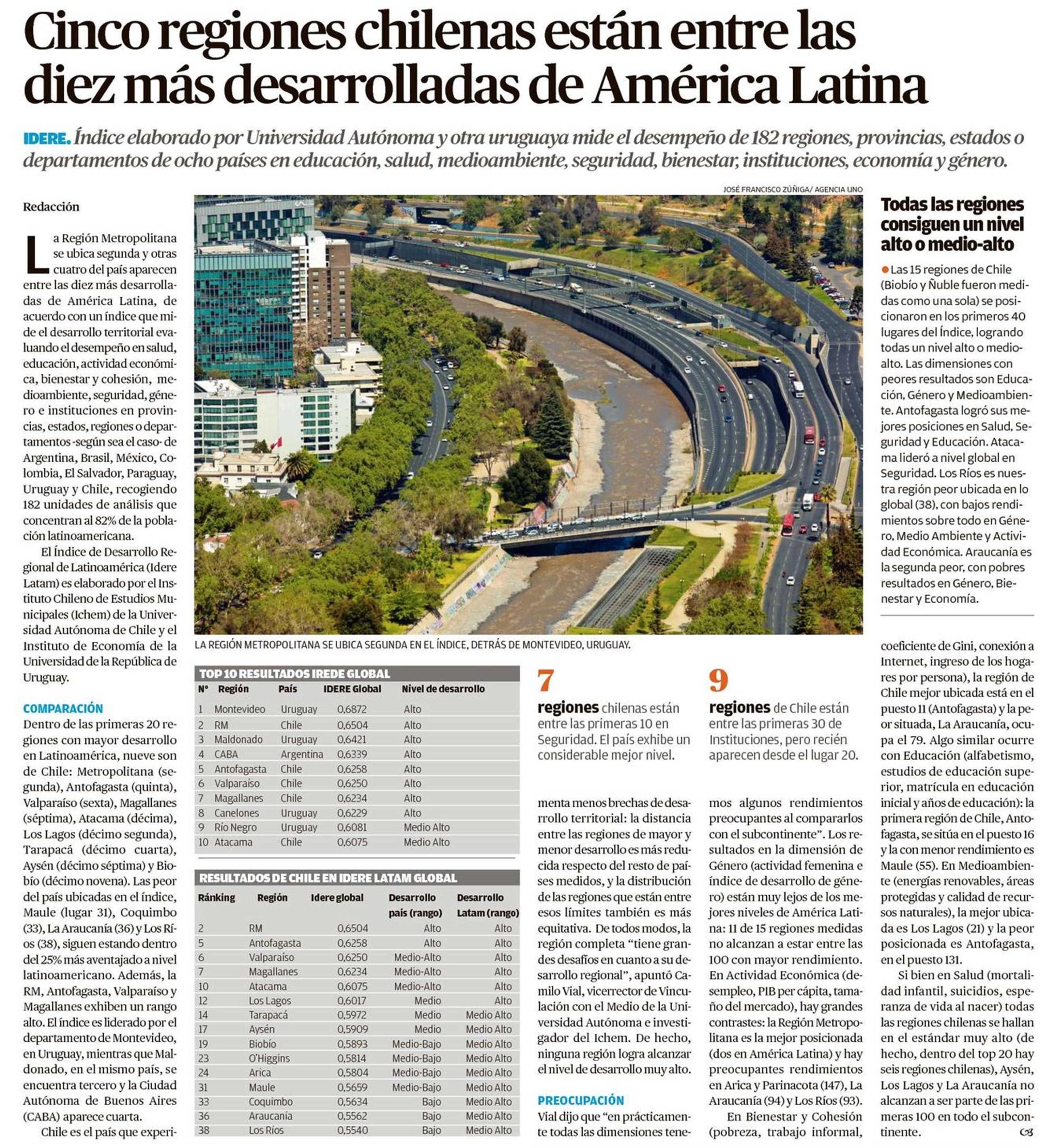 Cinco regiones chilenas están entre las diez más desarrolladas de América Latina