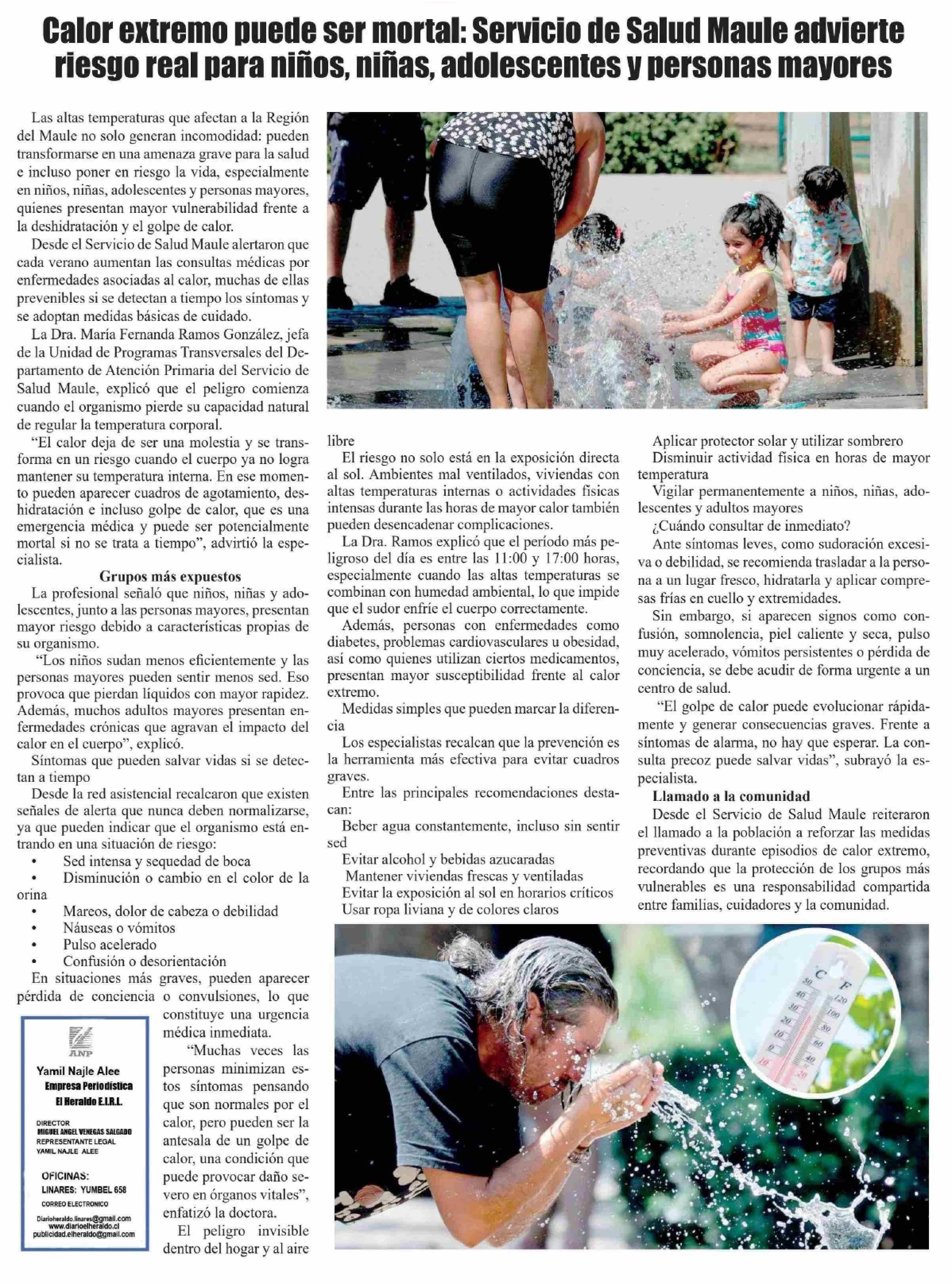 Calor extremo puede ser mortal: Servicio de Salud Maule advierte riesgo real para niños, niñas, adolescentes y personas mayores