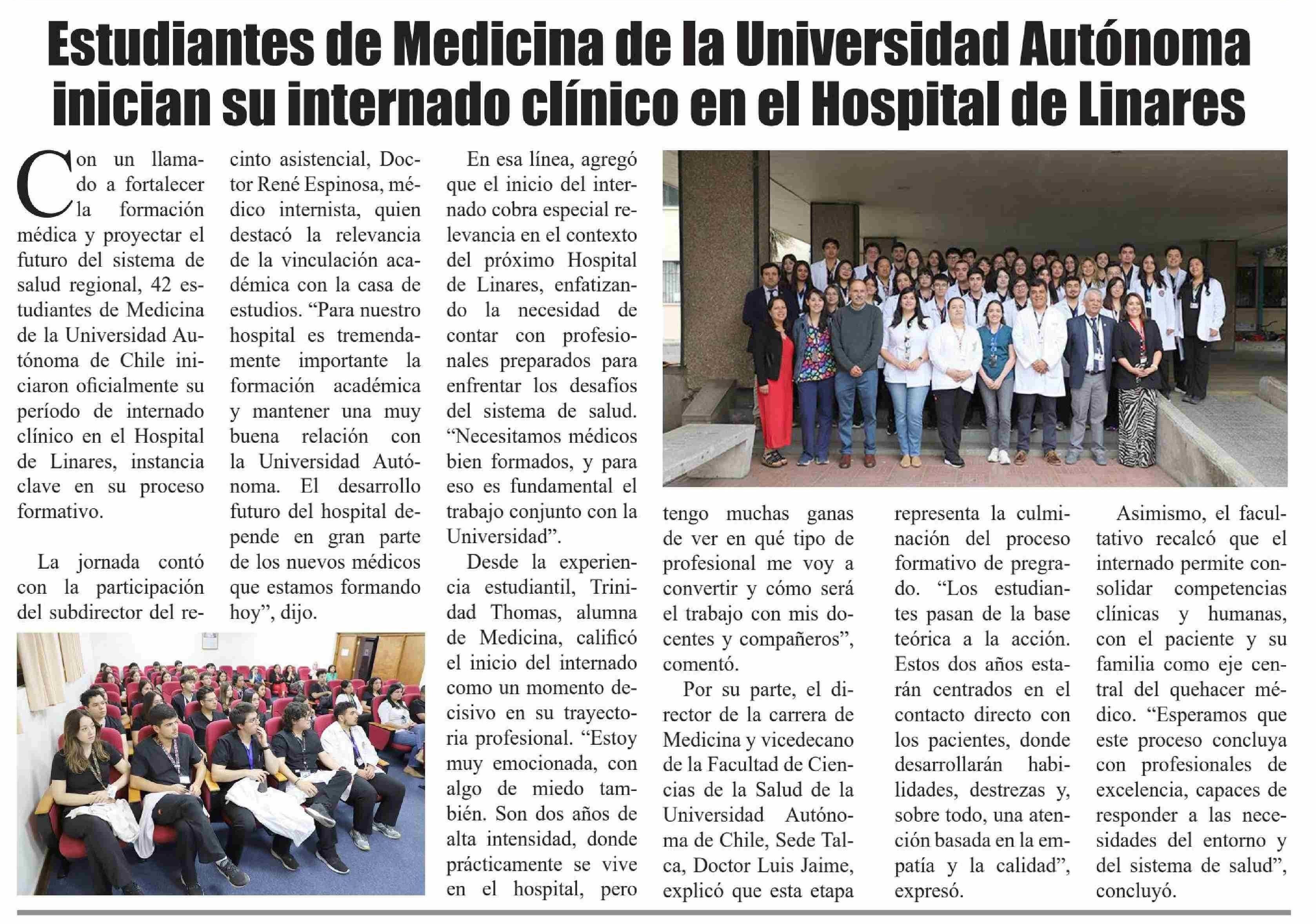 Título: Estudiantes de Medicina de la Universidad Autónoma inician su internado clínico en el Hospital de Linares