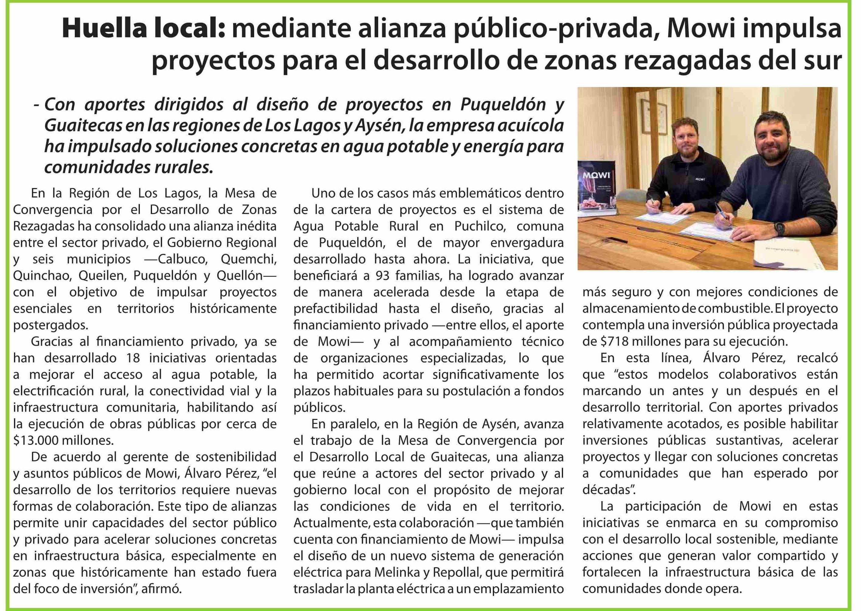 Huella local: mediante alianza público-privada, Mowi impulsa proyectos para el desarrollo de zonas rezagadas del sur