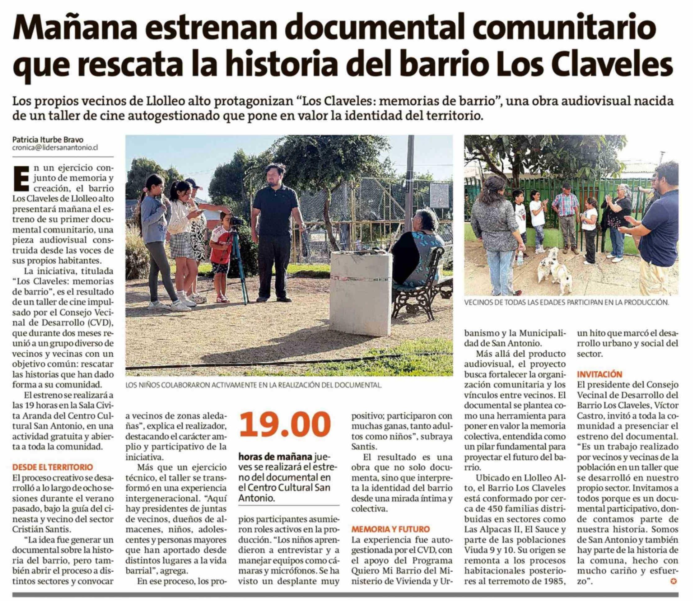 Mañana estrenan documental comunitario que rescata la historia del barrio Los Claveles