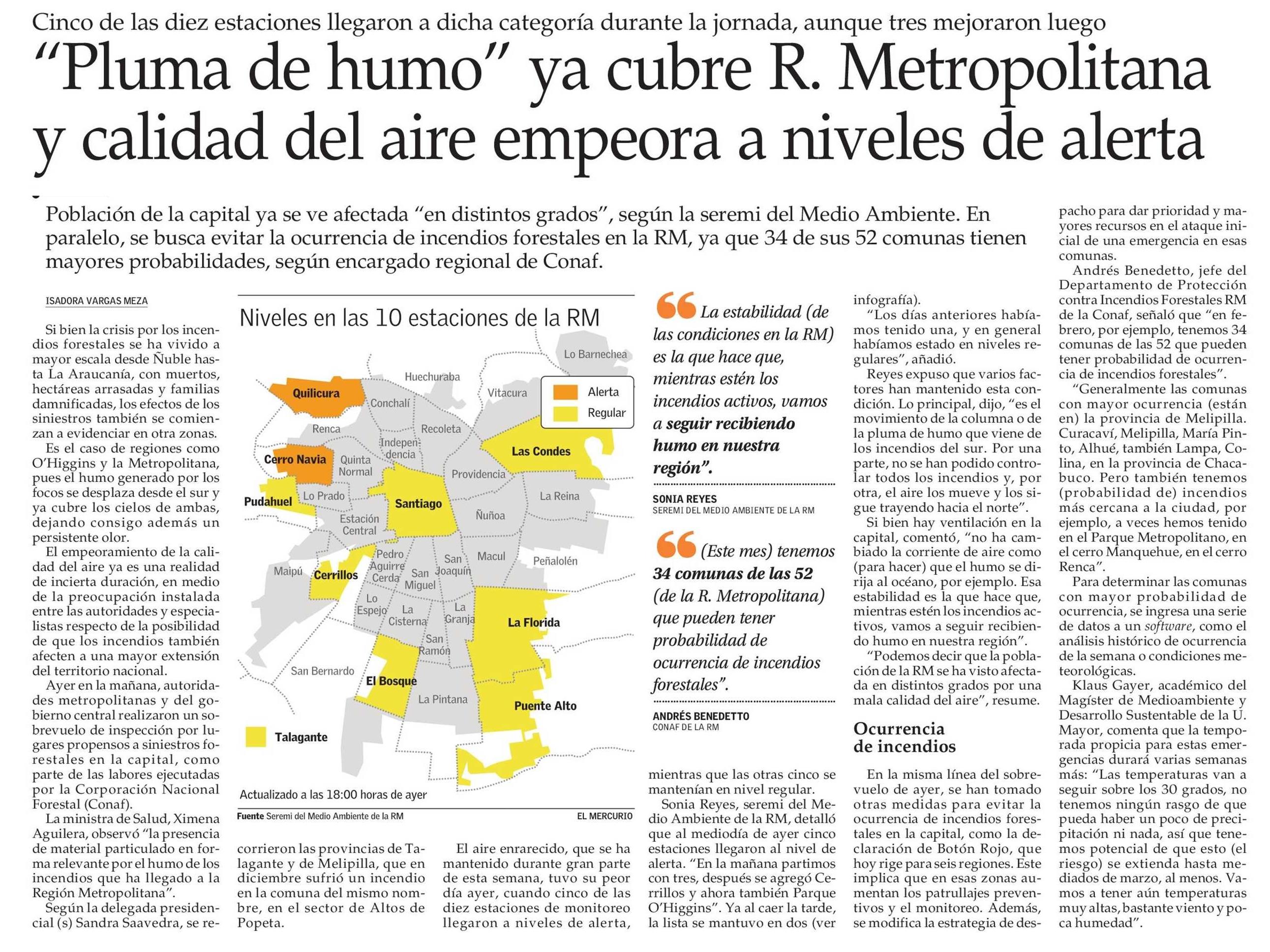 “Pluma de humo” ya cubre R. Metropolitana y calidad del aire empeora a niveles de alerta