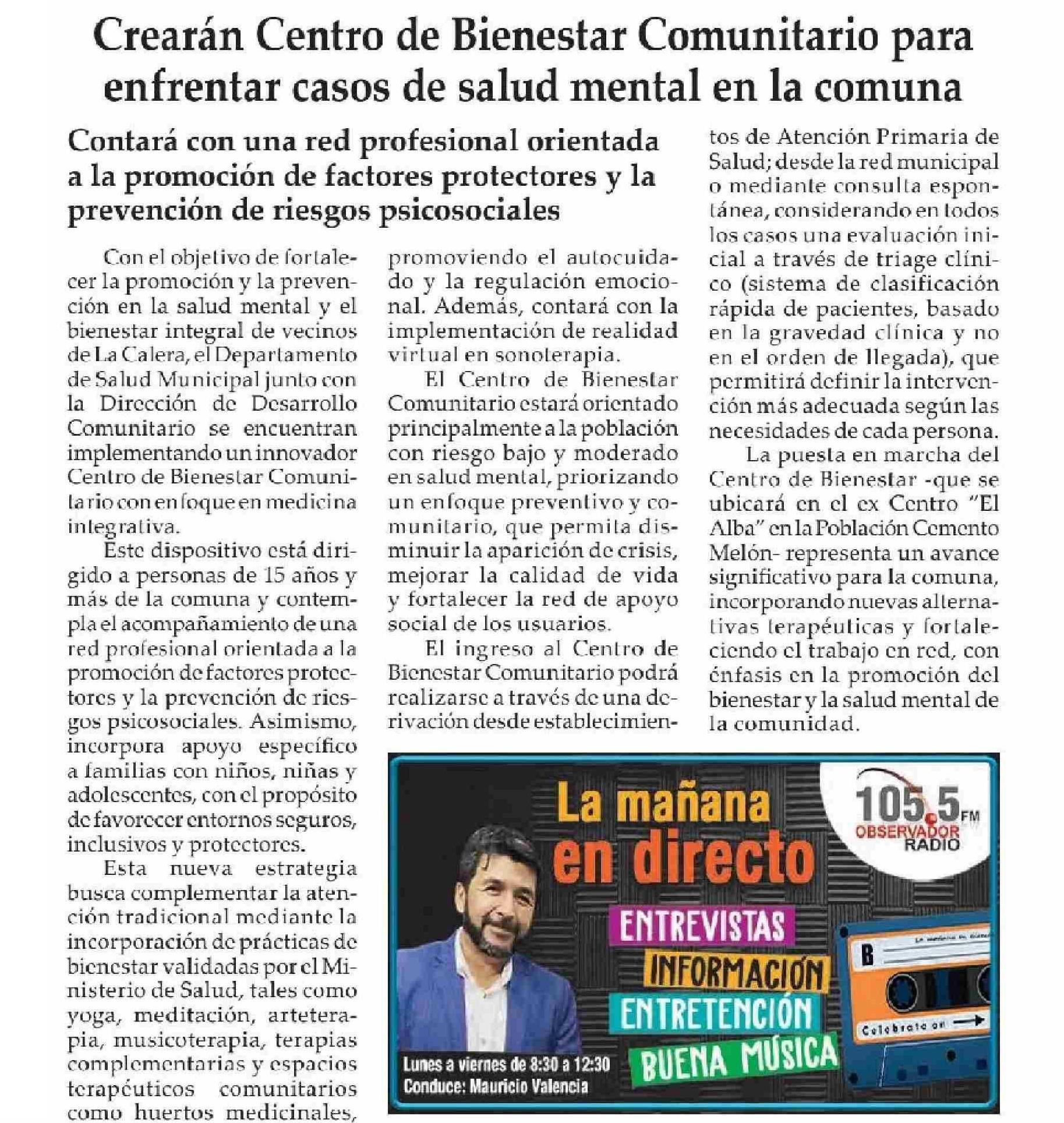 Crearán Centro de Bienestar Comunitario para enfrentar casos de salud mental en la comuna