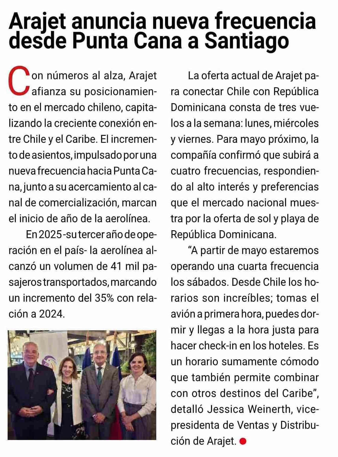 Arajet anuncia nueva frecuencia desde Punta Cana a Santiago
