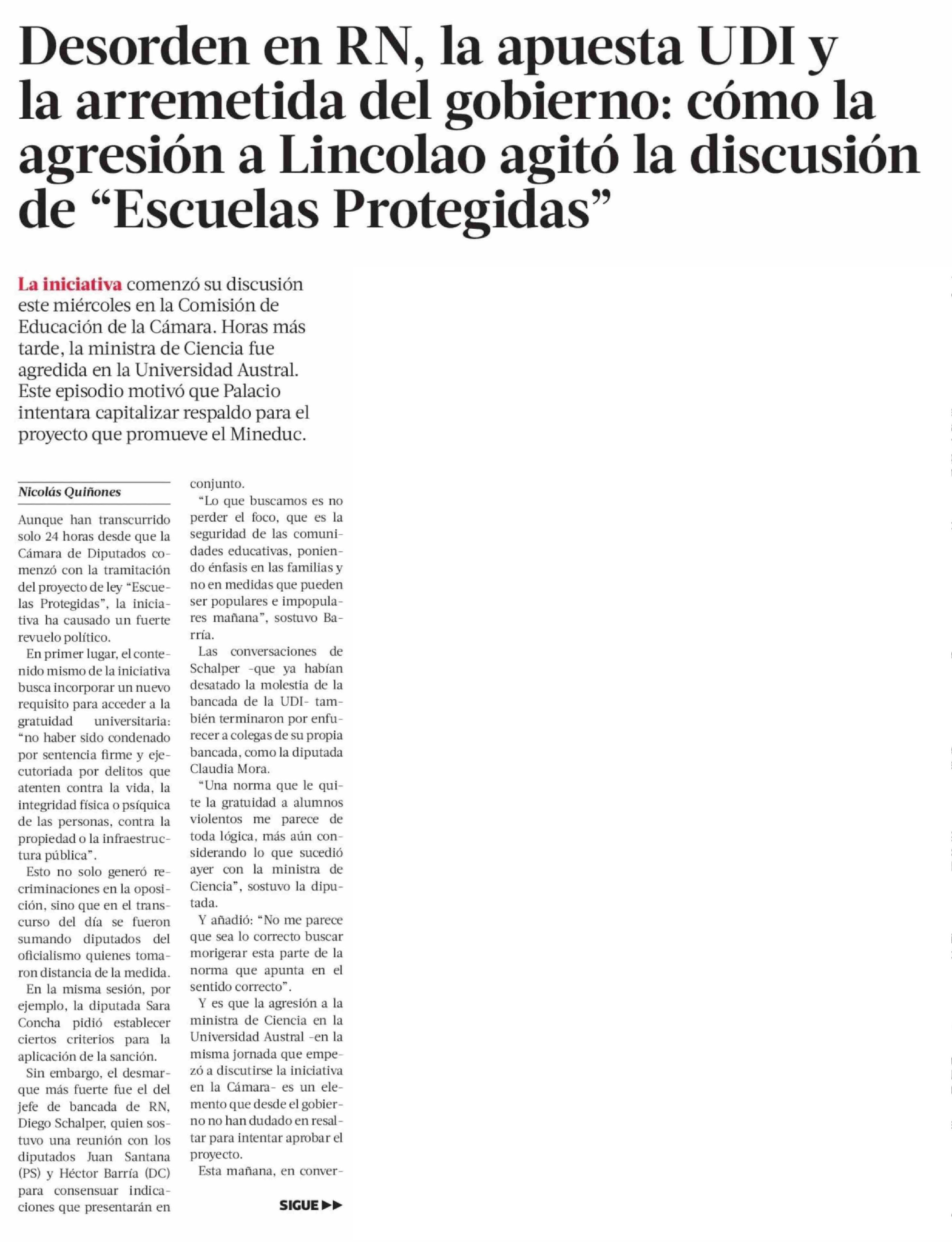 Desorden en RN, la apuesta UDI y la arremetida del gobierno: cómo la agresión a Lincolao agitó la discusión de “Escuelas Protegidas”