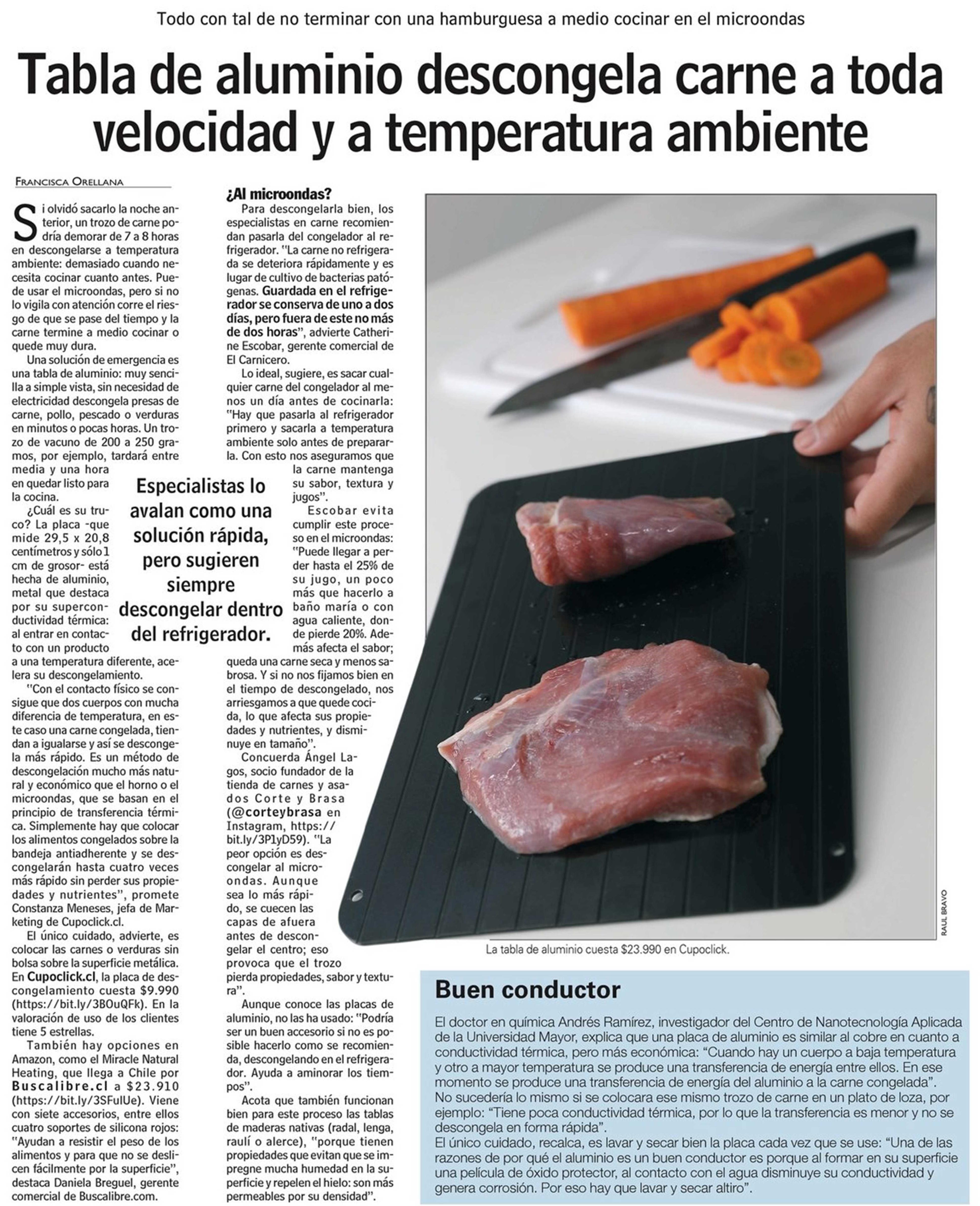 Tabla de aluminio descongela carne a toda velocidad y a temperatura ambiente