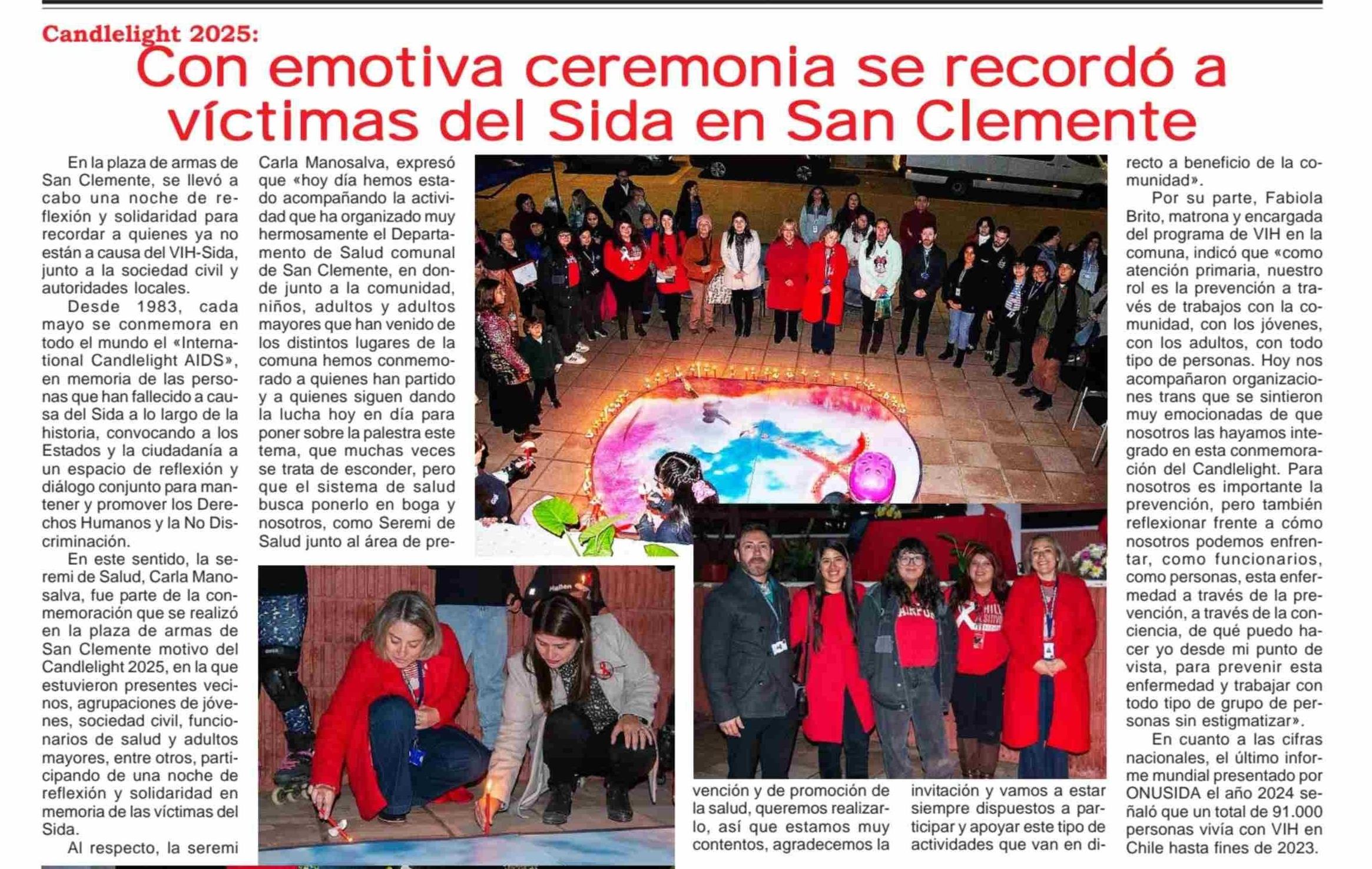 Don emotiva ceremonia se recordó a víctimas del Sida en San Clemente
