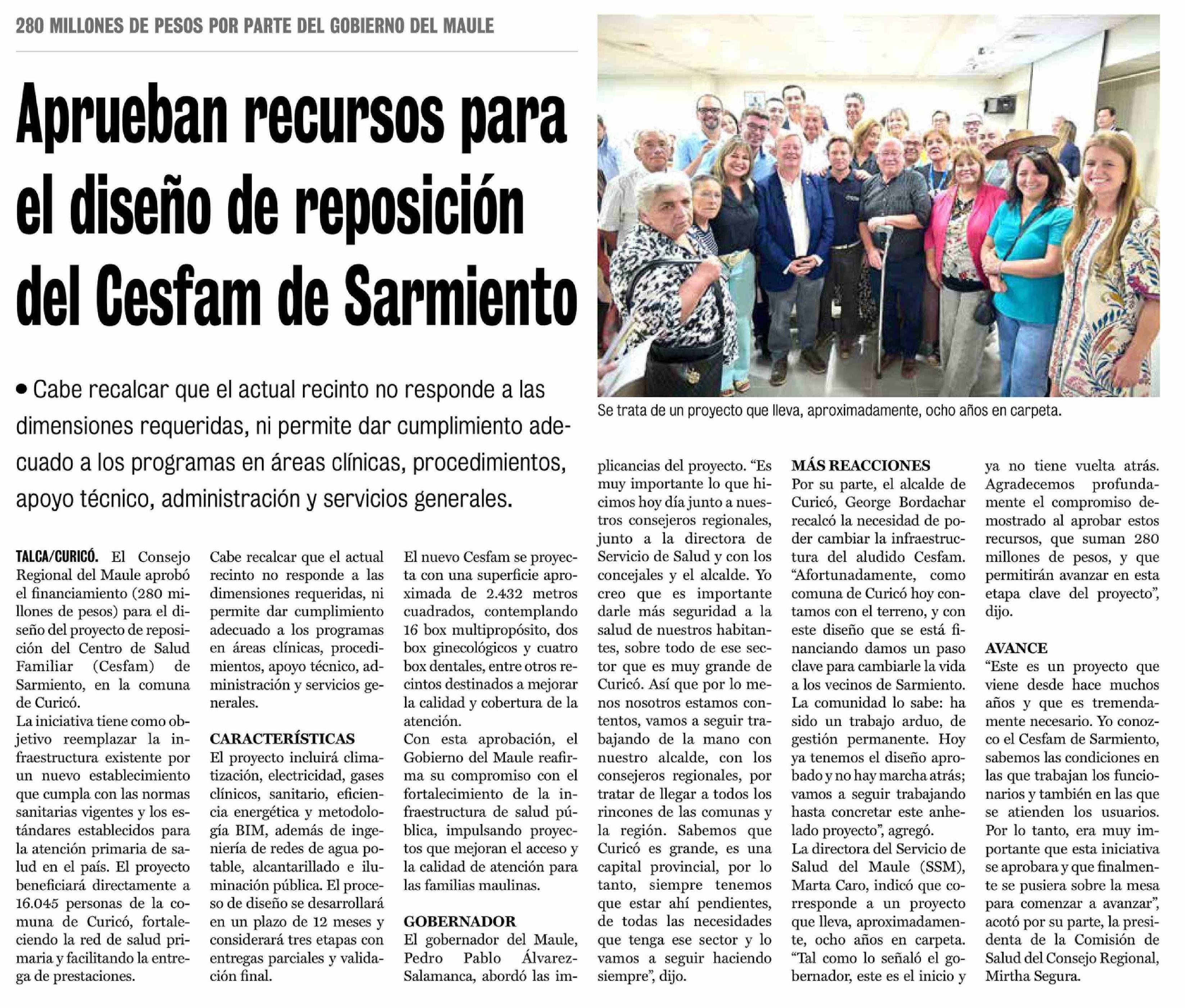 Aprueban recursos para el diseño de reposición del Cesfam de Sarmiento
