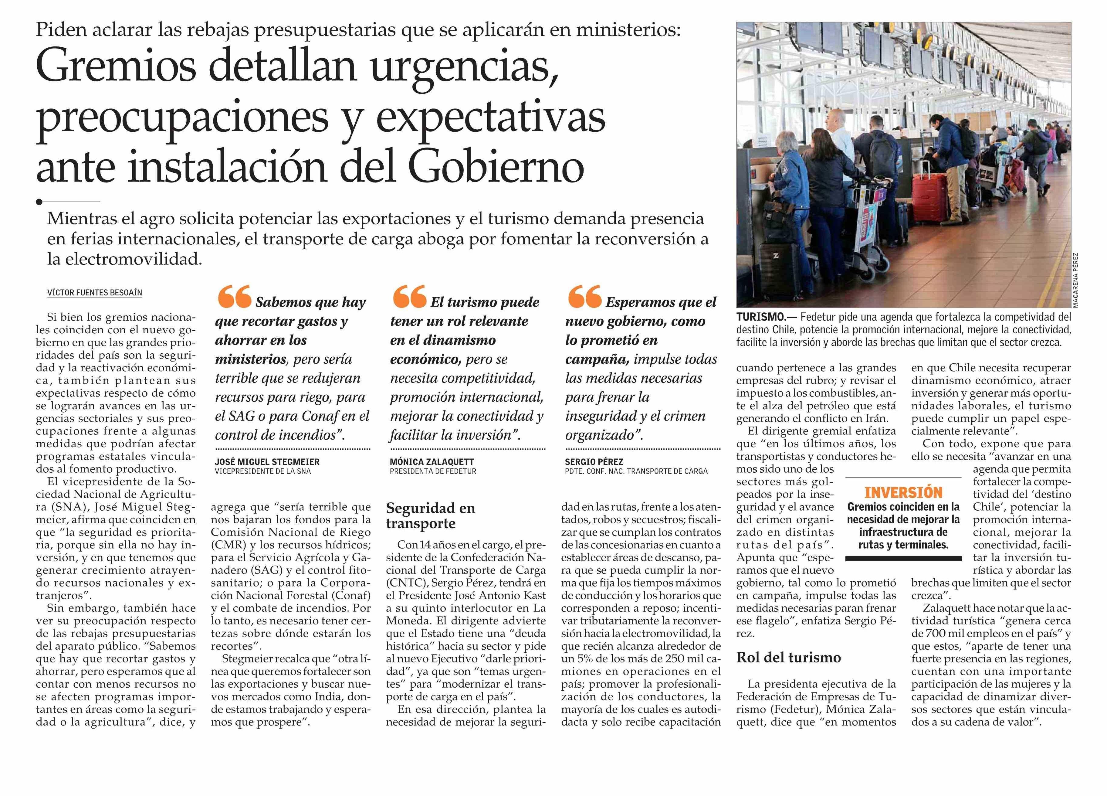 Gremios detallan urgencias, preocupaciones y expectativas ante instalación del Gobierno