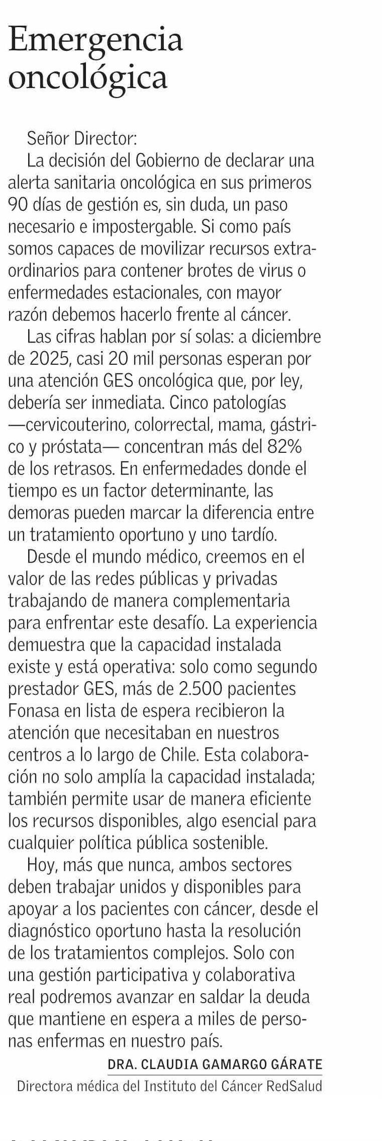 CARTAS: Emergencia oncológica