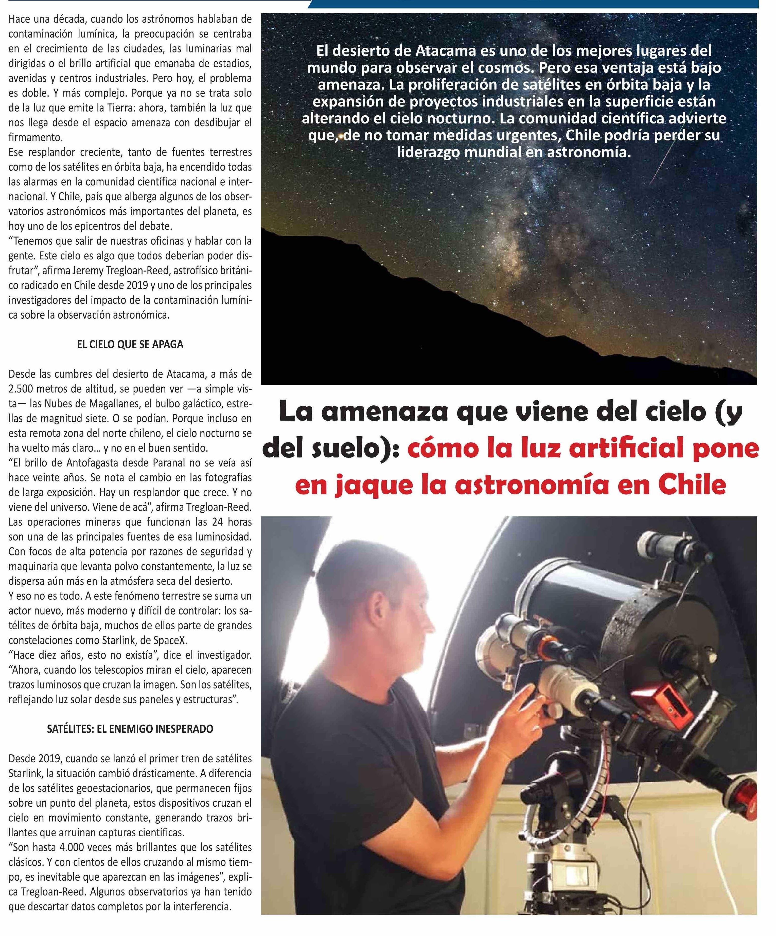 La amenaza que viene del cielo (y del suelo): cómo la luz artificial pone en jaque la astronomía en Chile