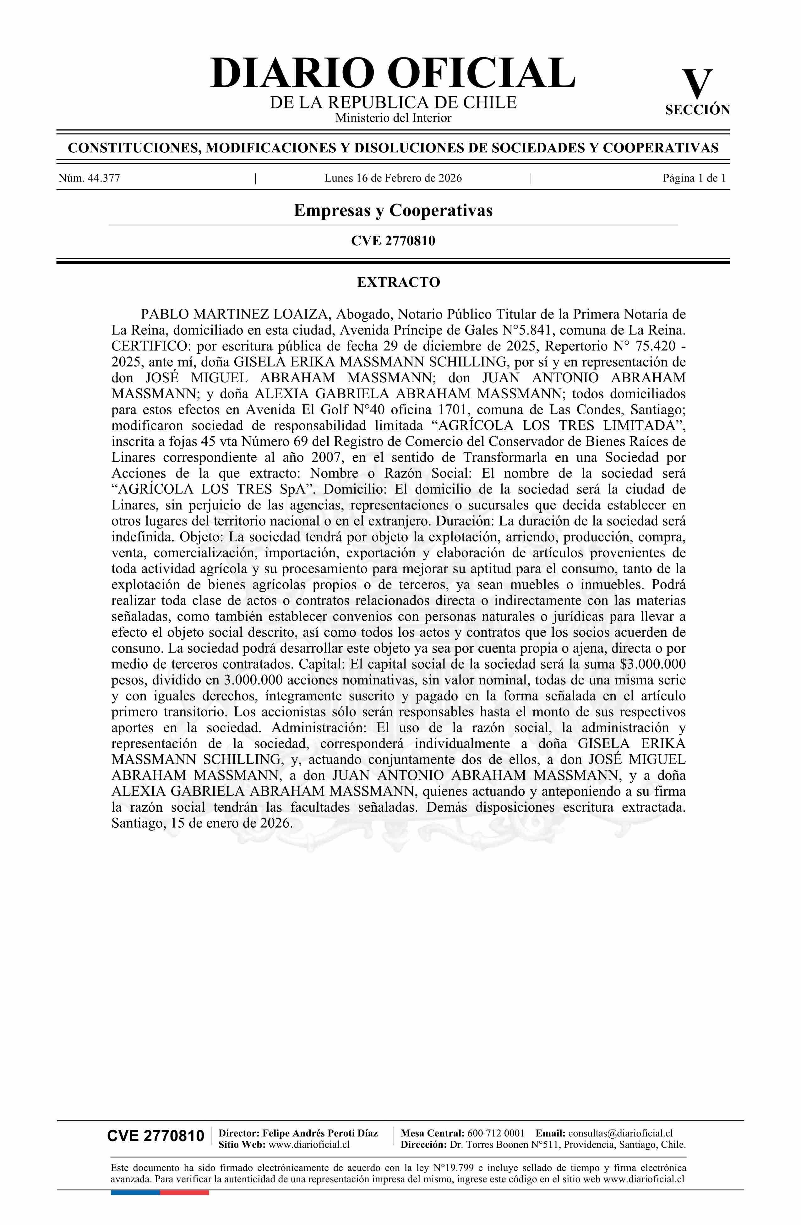 AGRÍCOLA LOS TRES LIMITADA 76.832.070-5*