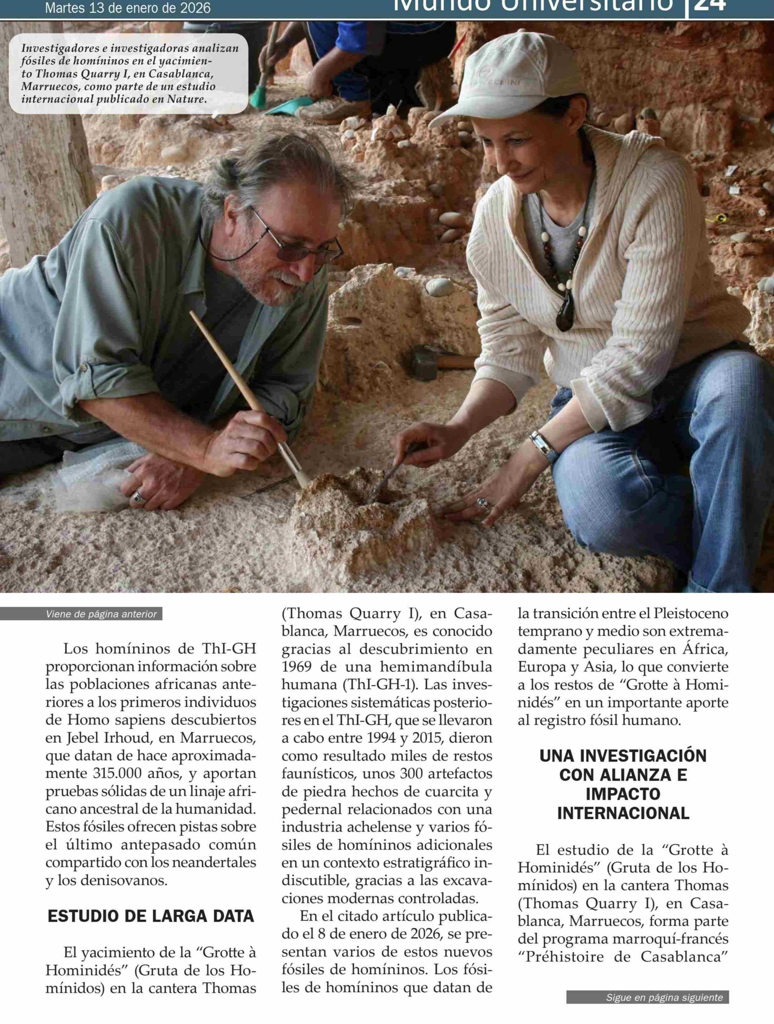 Estudio con participación de académico U. de Chile revela nuevos fósiles del linaje humano en Marruecos