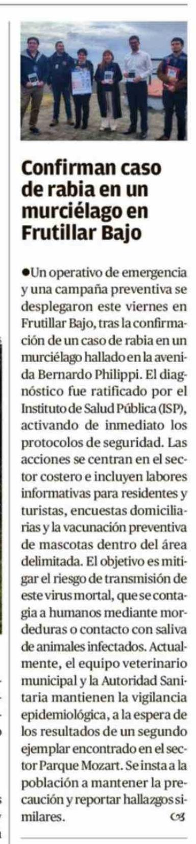 Confirman caso de rabia en un murciélago en Frutillar Bajo